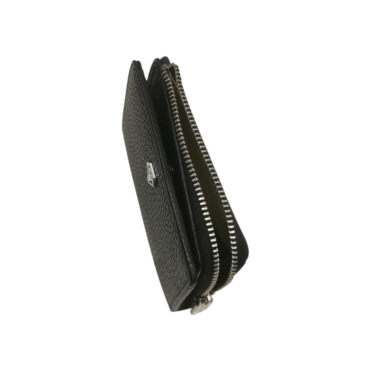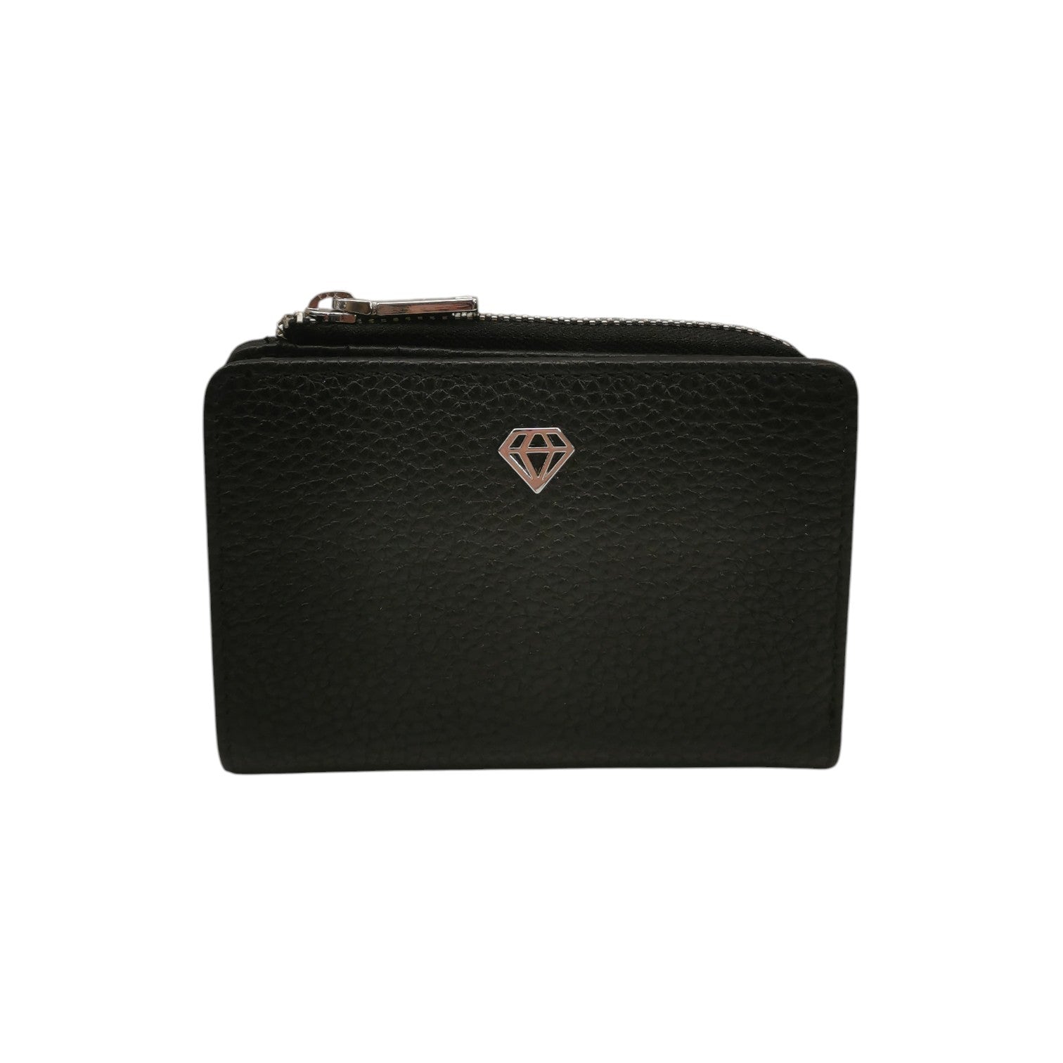 Caleidos Portafoglio Donna in Pelle Martellata Nera con Zip e Bottone