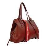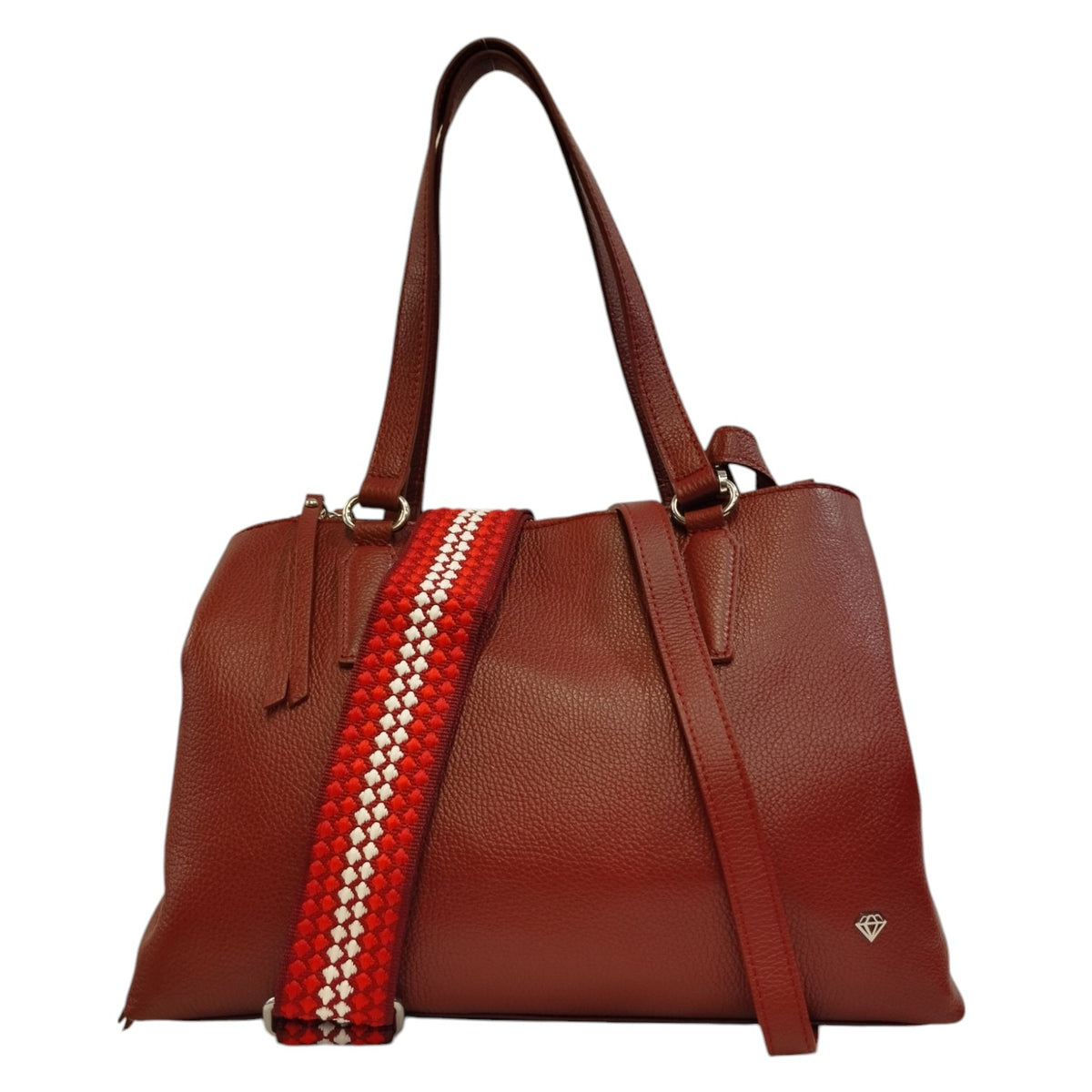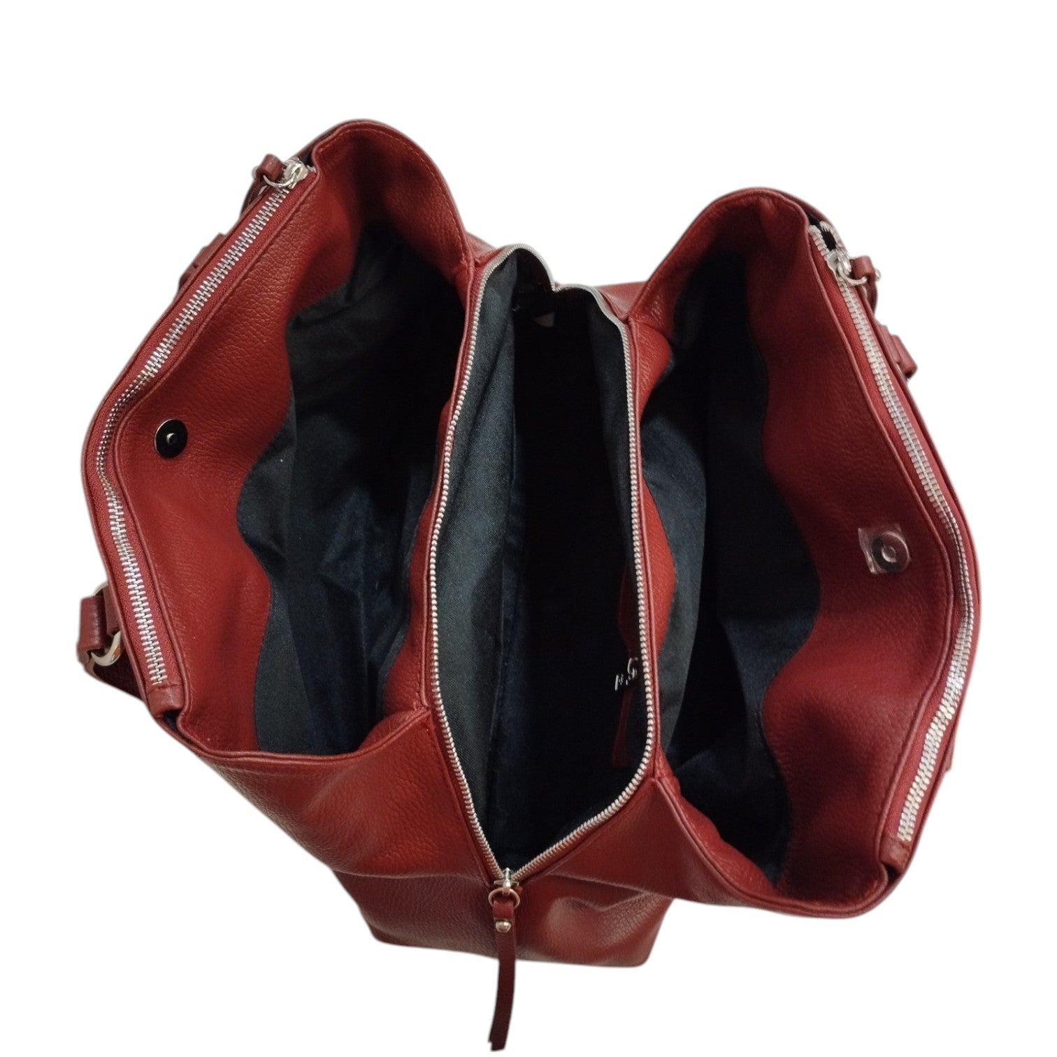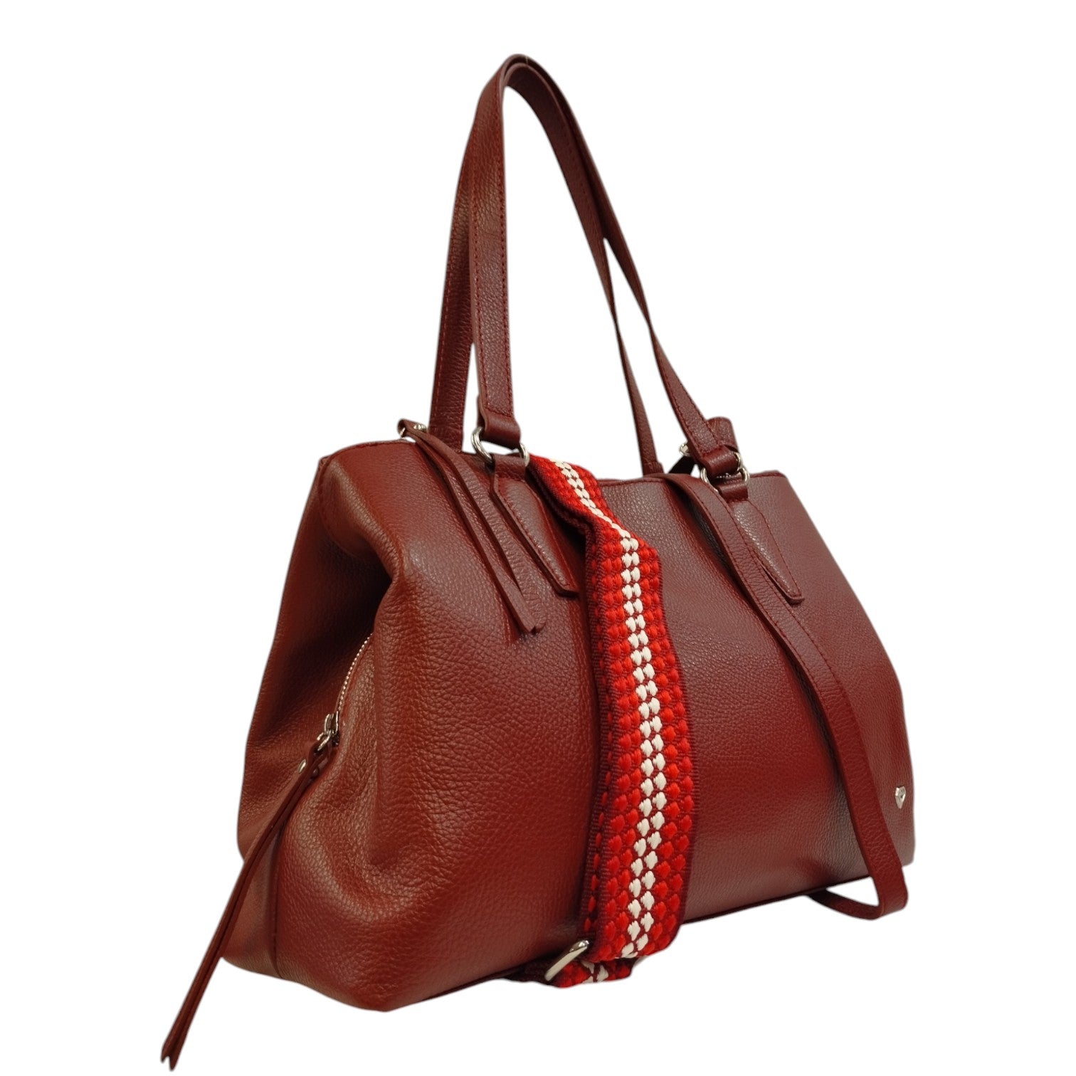 Caleidos Borsa a Spalla Grande Donna in Pelle Vino con Doppia Tracolla