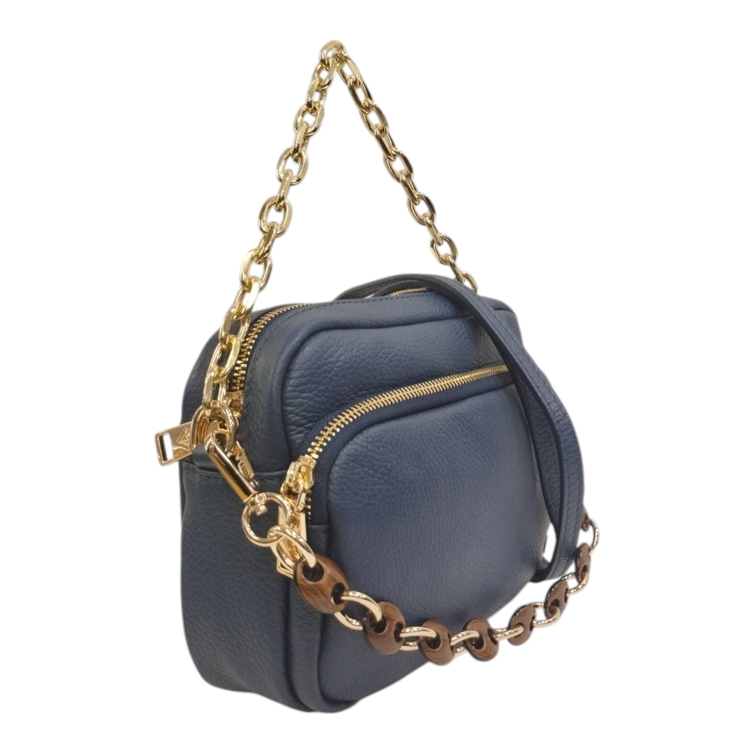 Caleidos Borsa a Tracolla Donna in Pelle Blu con Doppia Catena e Doppio Scomparto