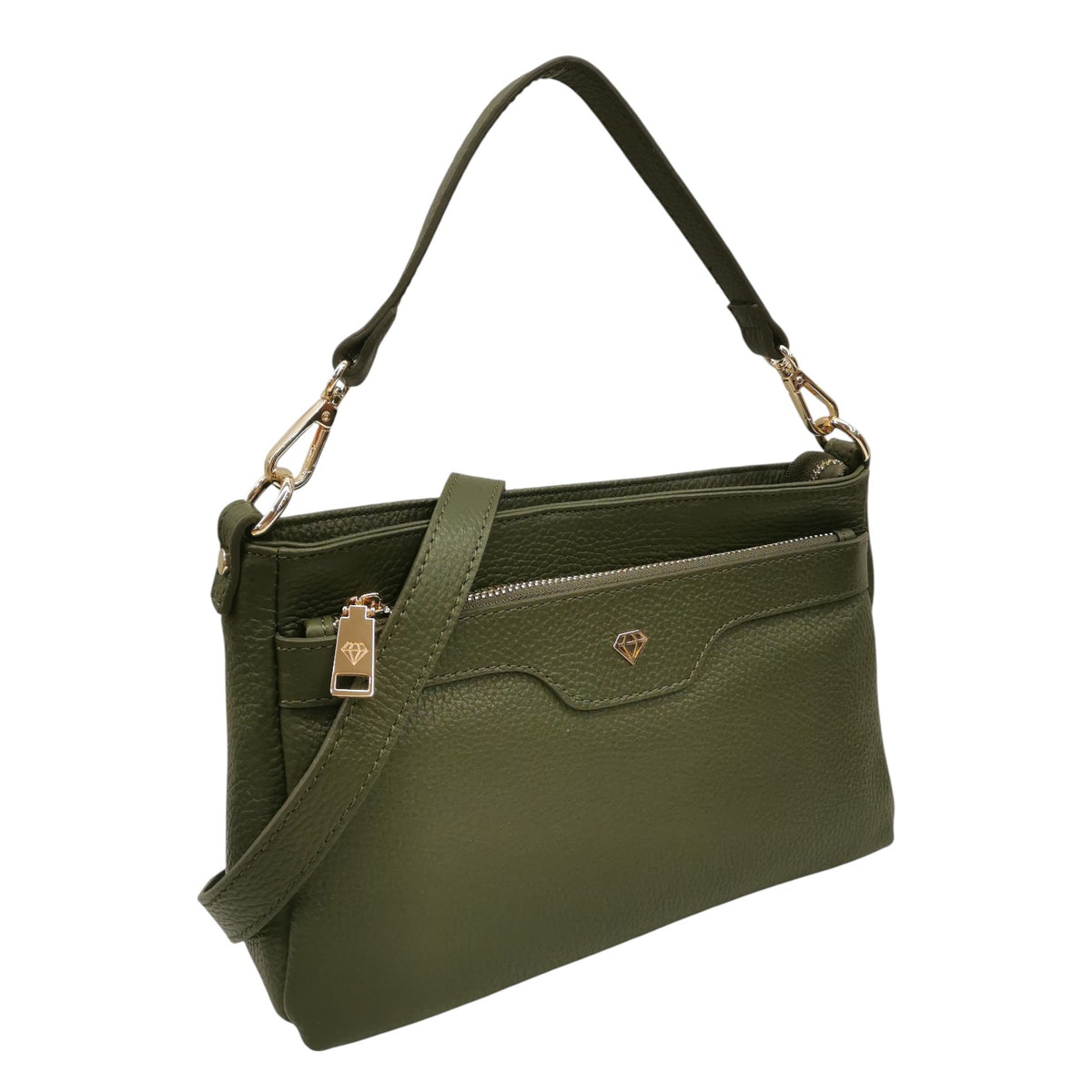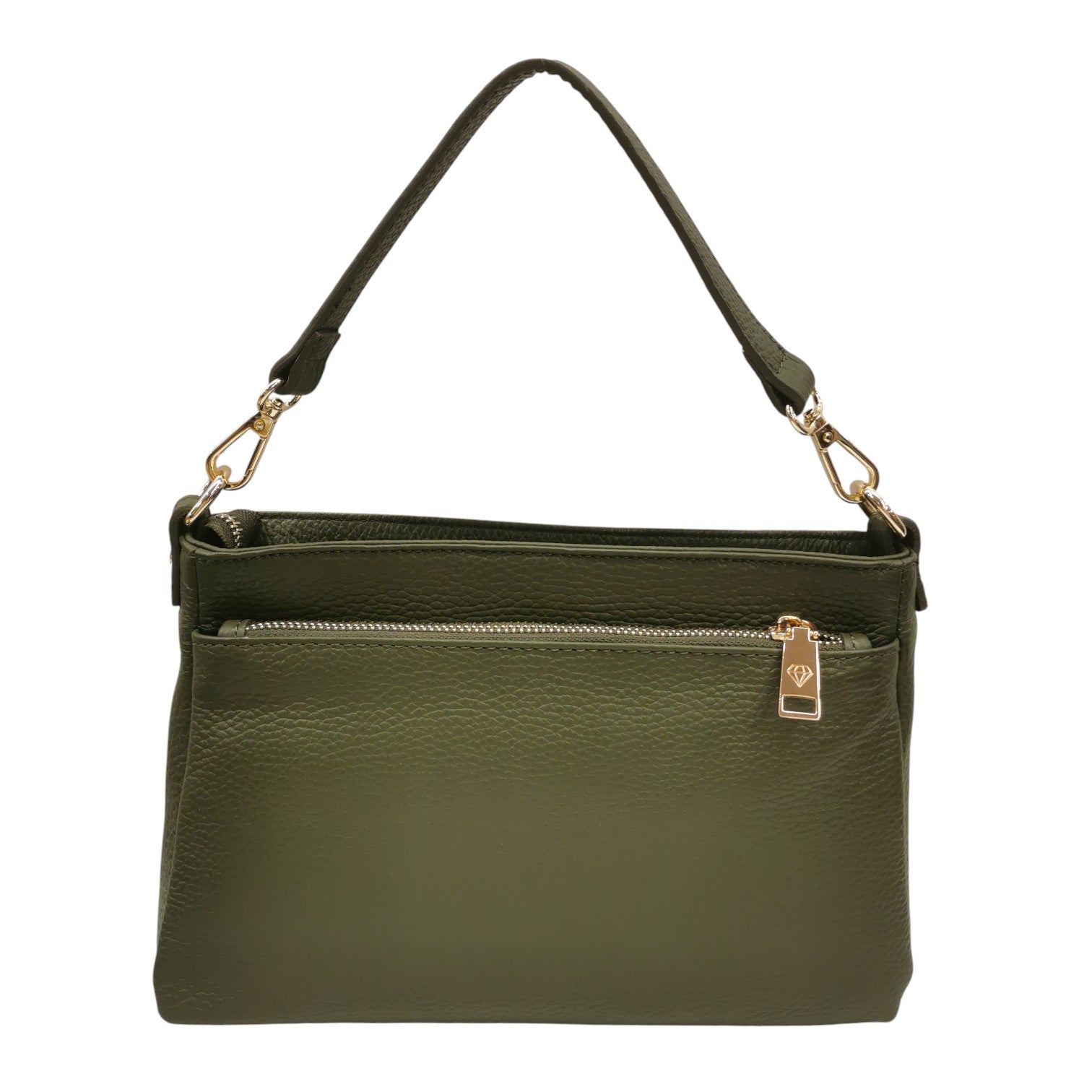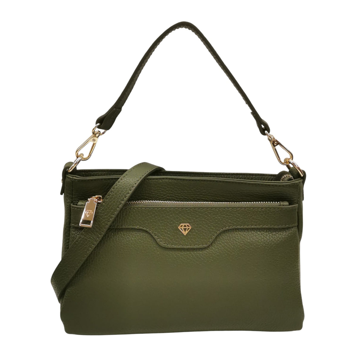 La Borsa a tracolla firmata Caleidos, un'opera di versatilità in vera pelle nella sofisticata variante foresta presenta un manico removibile che ti permette di passare facilmente da borsa a spalla o a tracolla, adattandosi perfettamente alle tue esigenze quotidiane. Presenta triplo scompartimento chiuso con zip foderati in tessuto di cui dispone di un comodo taschino con zip.