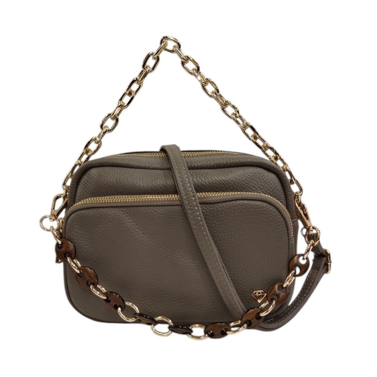 Caleidos Borsa a Tracolla Donna in Pelle Nebbia con Doppia Catena e Doppio Scomparto