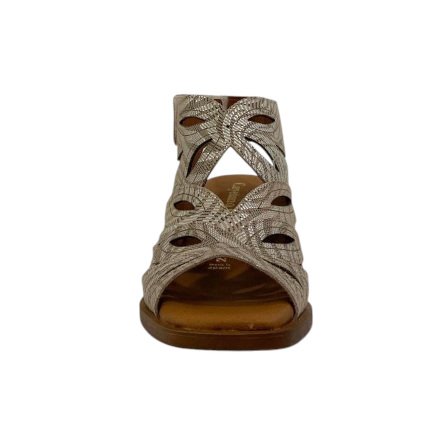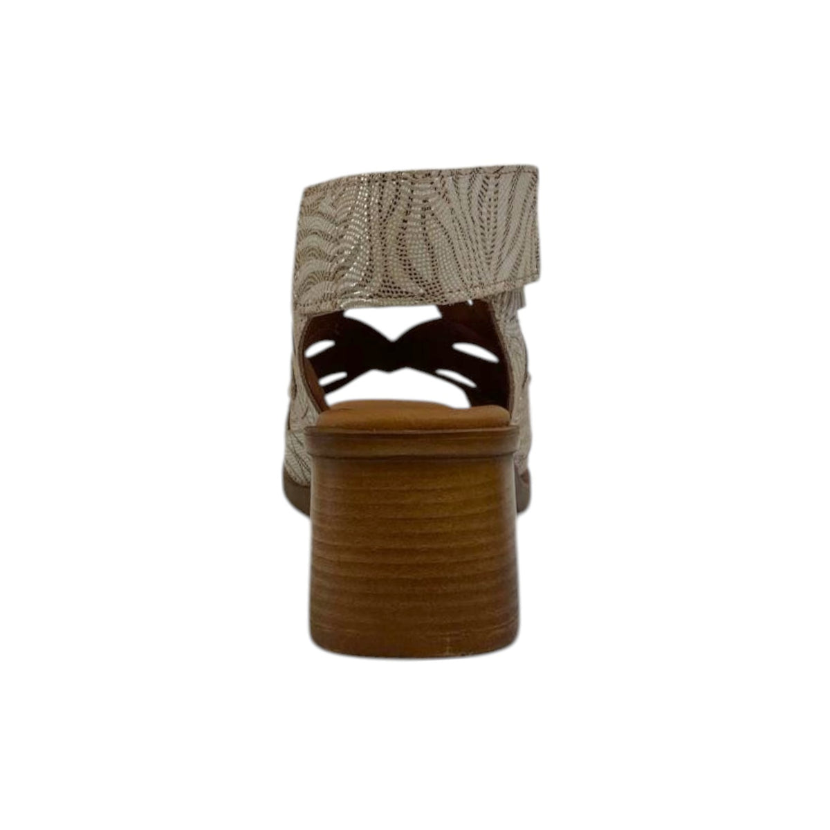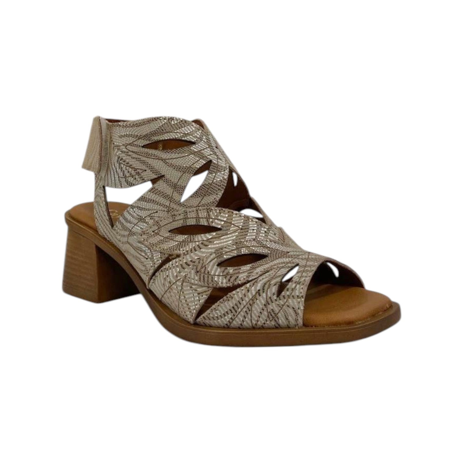 Cayetano Giménez Sandalo Donna in Pelle Traforata Taupe con Tacco Basso di 5,5cm