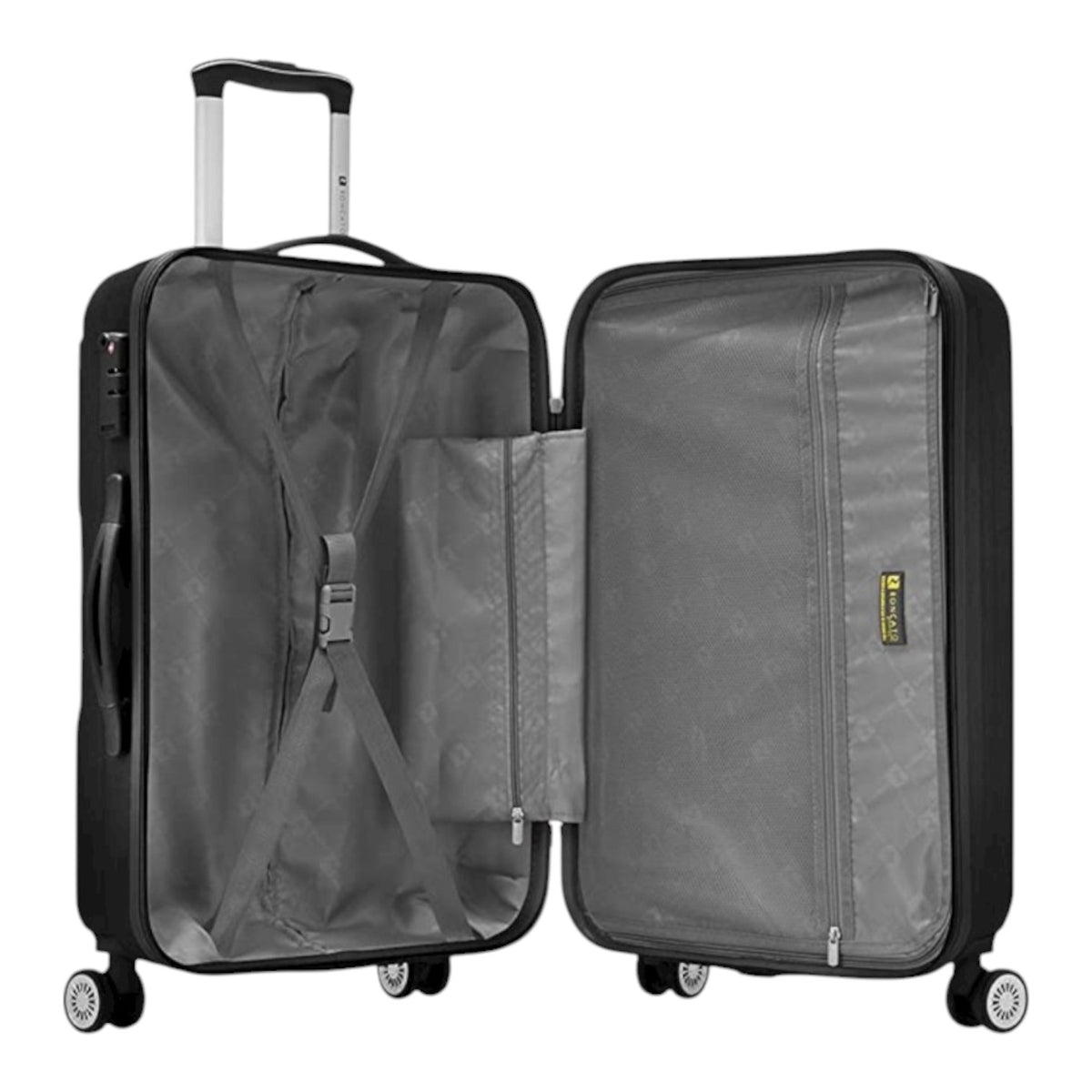 Il Trolley Grande firmato Ciak Roncato, con materiale, Abs 100%, nonostante la leggerezza, è altamente resistente agli urti. Adatta ai viaggi intercontinentali grazie alla chiusura a combinazione laterale con TSA, mentre le 4 ruote gemellari e pivotanti, progettate per facilitare il trasporto della valigia, rendono pratico ogni spostamento, sia esso in aereo, in macchina o in treno. Il carrello con push button rende fruibile il traino. Tutti gli interni sono completamente organizzati con divisorio e ferma abiti, garantendo la massima capienza e praticità.