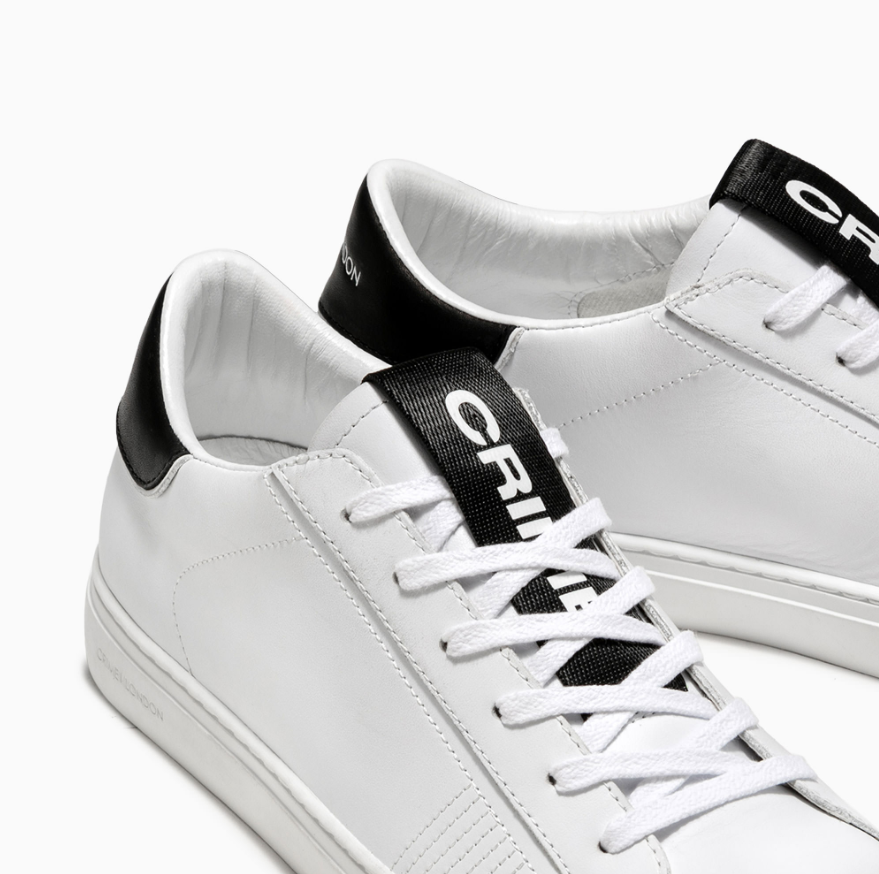 La sneaker da uomo Low Top Essential presenta una tomaia in pelle italiana di alta qualità. Lacci piatti in cotone. Linguetta con label Crime London in tessuto.