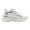 La Sneakers firmata Crime London, realizzata con tomaia in pelle e suede bianca e argento è caratterizzata da interno foderato in tessuto con sottopiede in pelle, inoltre dispone di linguetta in pelle bianca con label logata in pelle e da lacci argento.