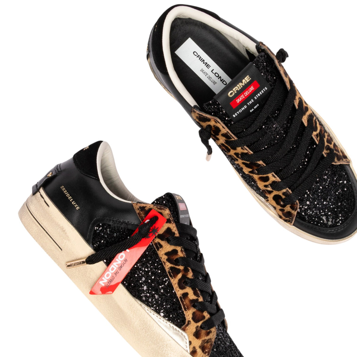 Crime London Sneakers Donna Nera Sk8 Deluxe Black Cheetah