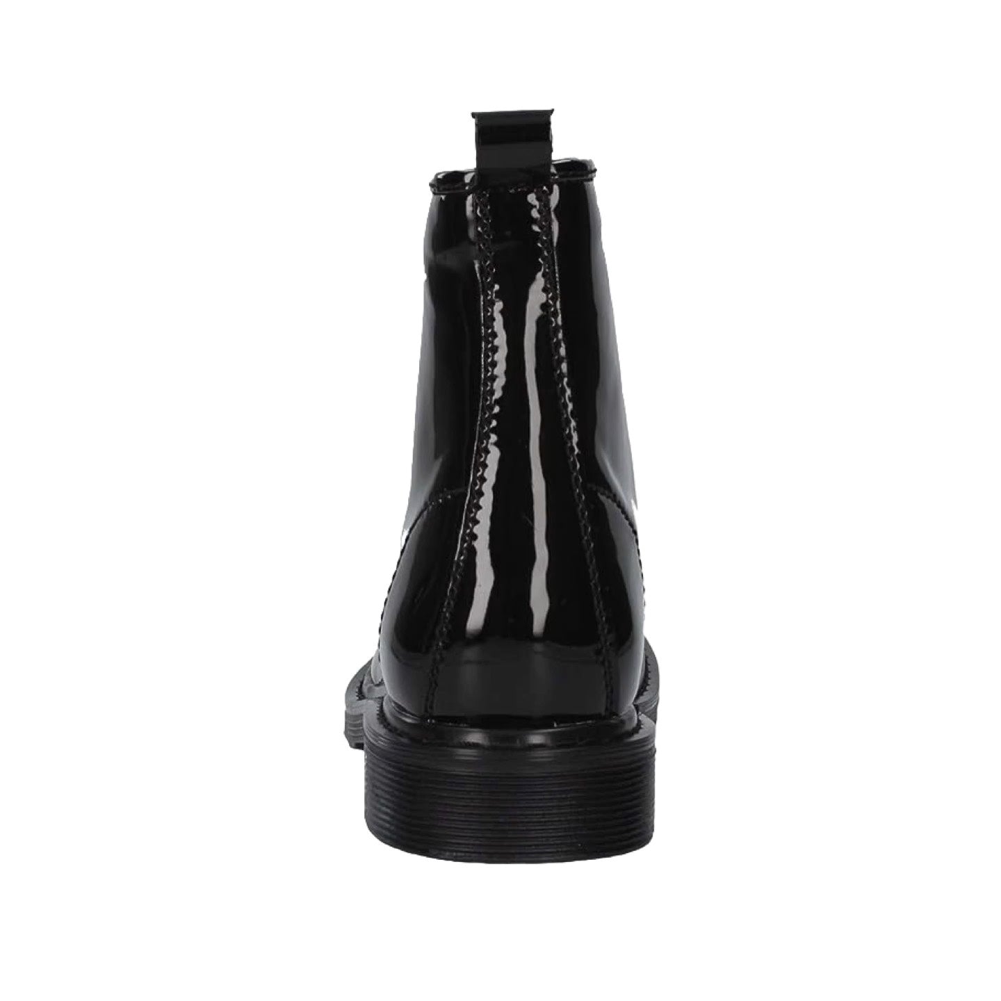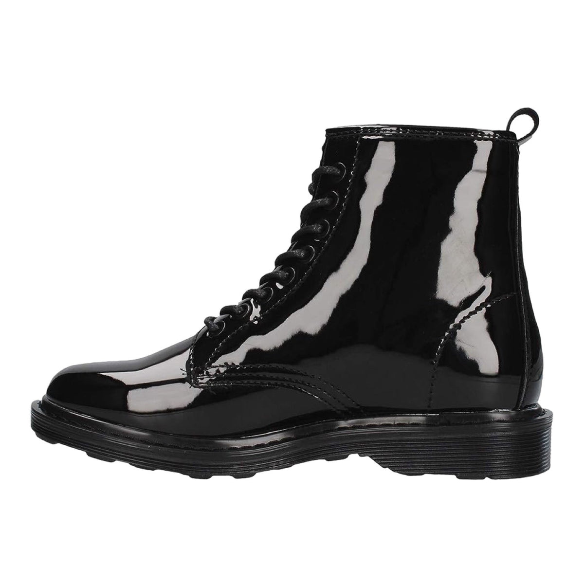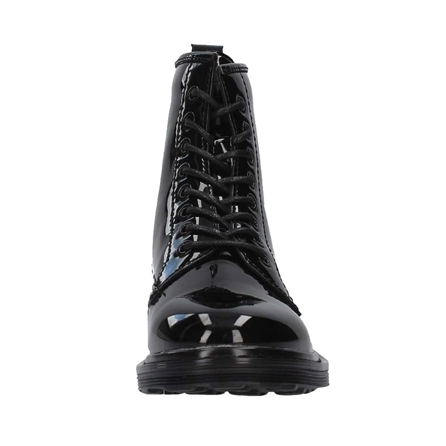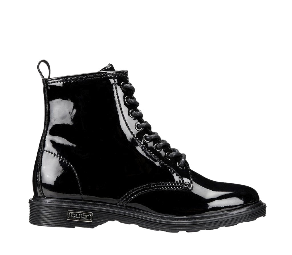 L'Anfibio firmato Cult, realizzato in vernice nera presenta l'interno foderato in pelle con occhielli scuri e chiusura con stringhe, questi anfibi conferiranno un tocco rock ad ogni vostro outfit.