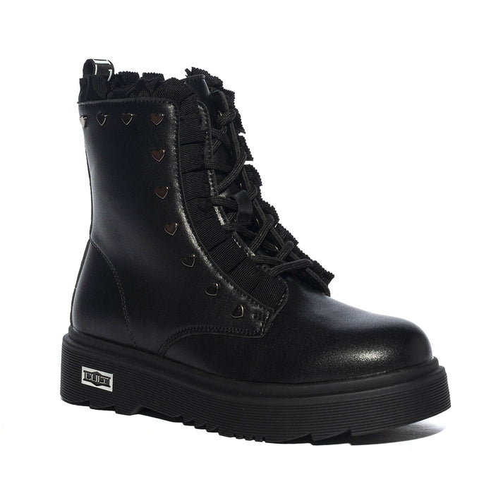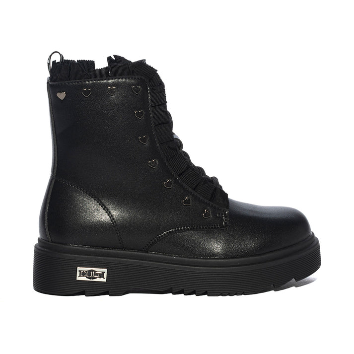 Cult anfibio nero bambina con borchiette a forma di cuoricino e cerniera laterale