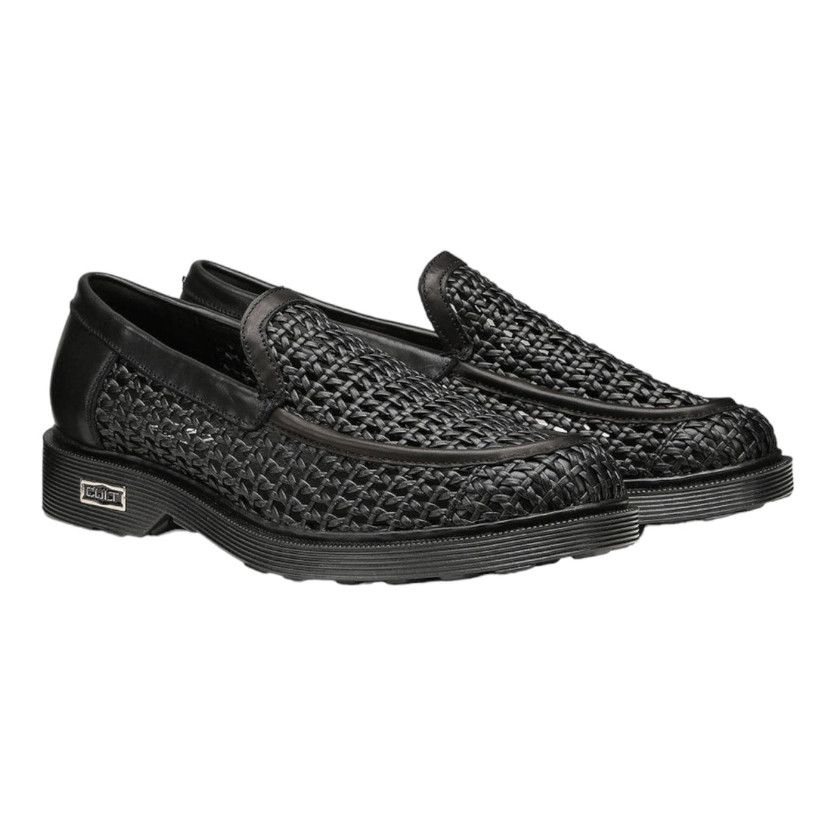 Cult Mocassino Uomo Nero in Pelle Intrecciata
