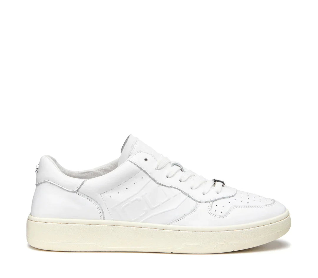 Le sneakers di Cult da uomo presentano una silhouette classica con tomaia bassa. Realizzate in pelle bianca, sono dotate di fori traspiranti e chiusura con lacci. Presentano il logo in rilievo sulla parte laterale della scarpa e l'iconica targhetta metallica sul davanti.