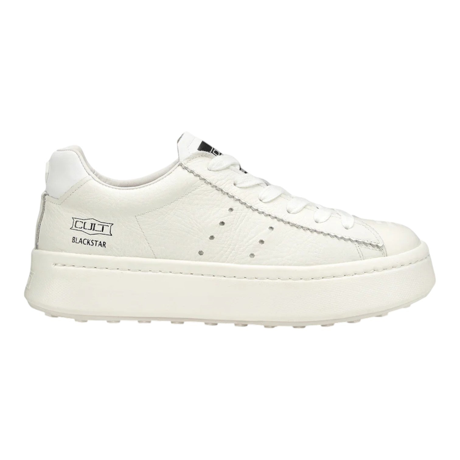 La Sneakers firmata Cult, dal design contemporaneo realizzata in pelle bianca è caratterizzata da voluminosa suola con il puntale liscio in gomma definiscono l'attitudine sportiva del modello, firmato da iconici dettagli logati a contrasto.