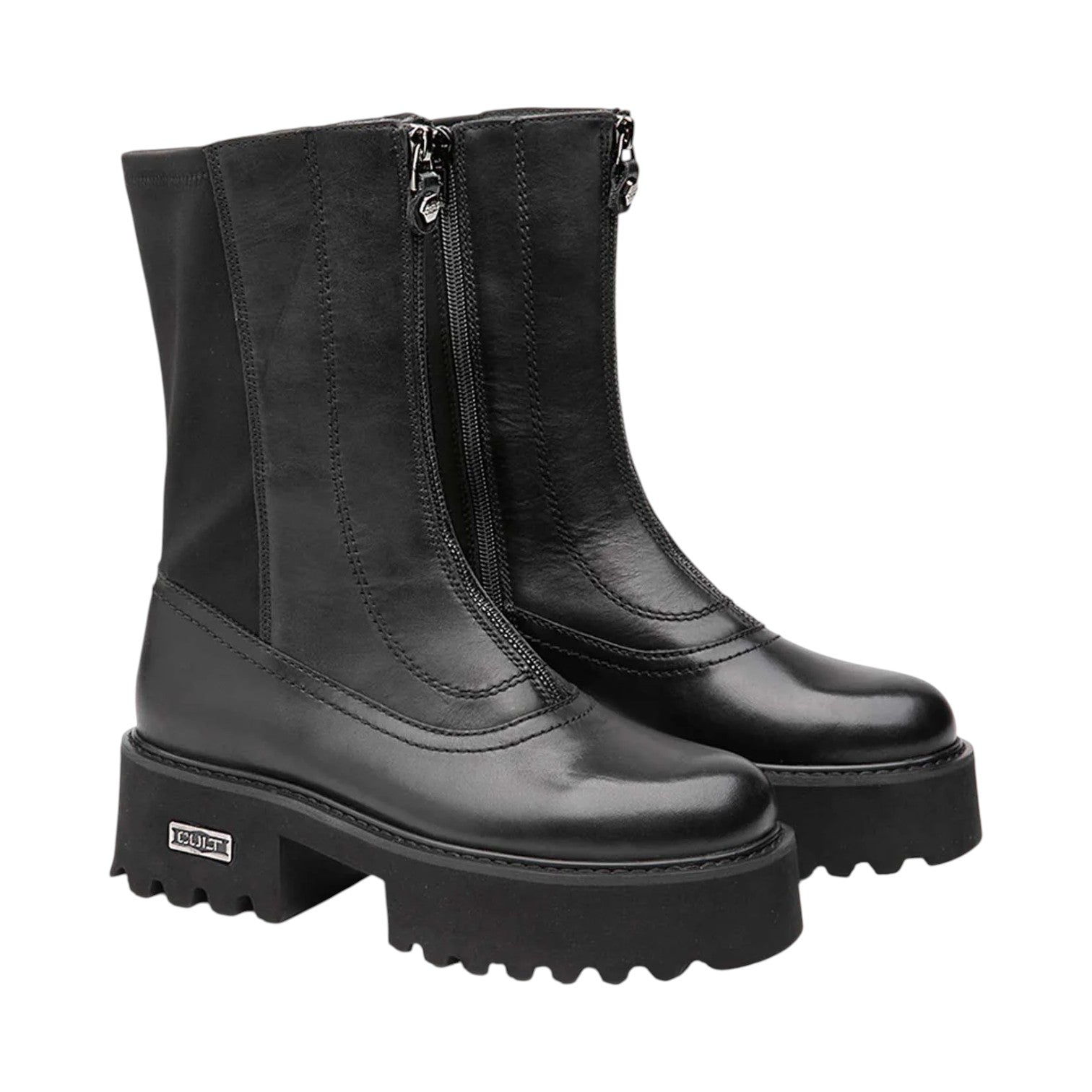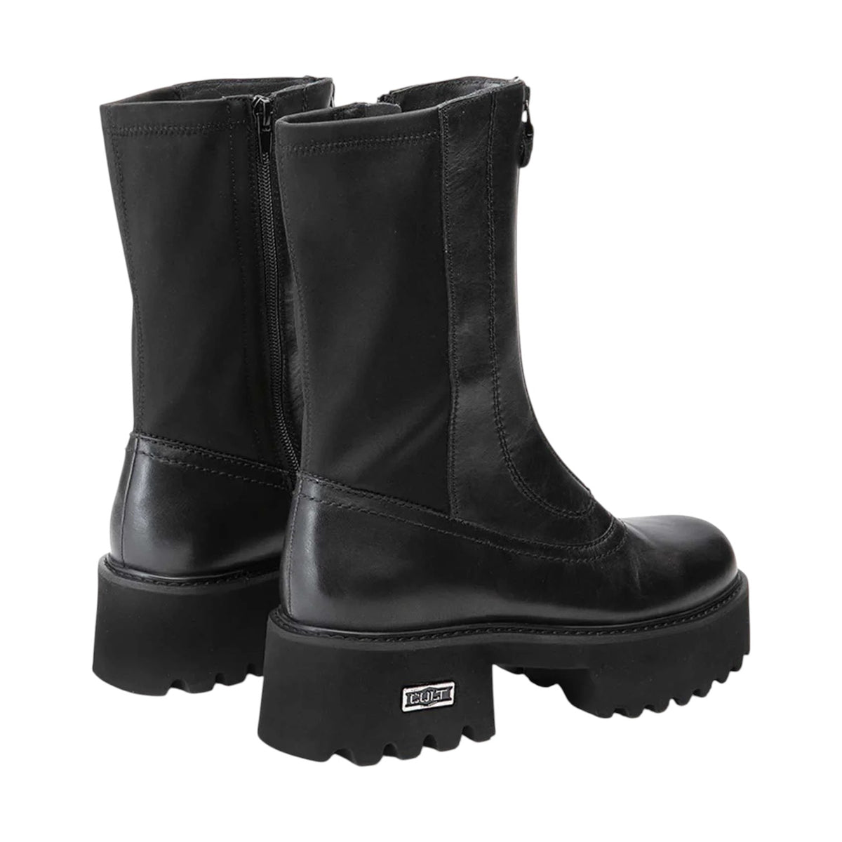 Lo Stivaletto firmato Cult, un modello audace che combina pelle liscia e inserti in lycra per una calzata avvolgente. L’allacciatura con zip frontale aggiunge un tocco contemporaneo e pratico, mentre la suola chunky effetto carrarmato offre stabilità e personalità. Il logo laterale metallico firma ogni passo con carattere. Ideale per chi ama l’urban style con un’anima rock.