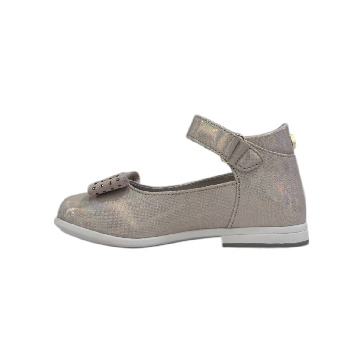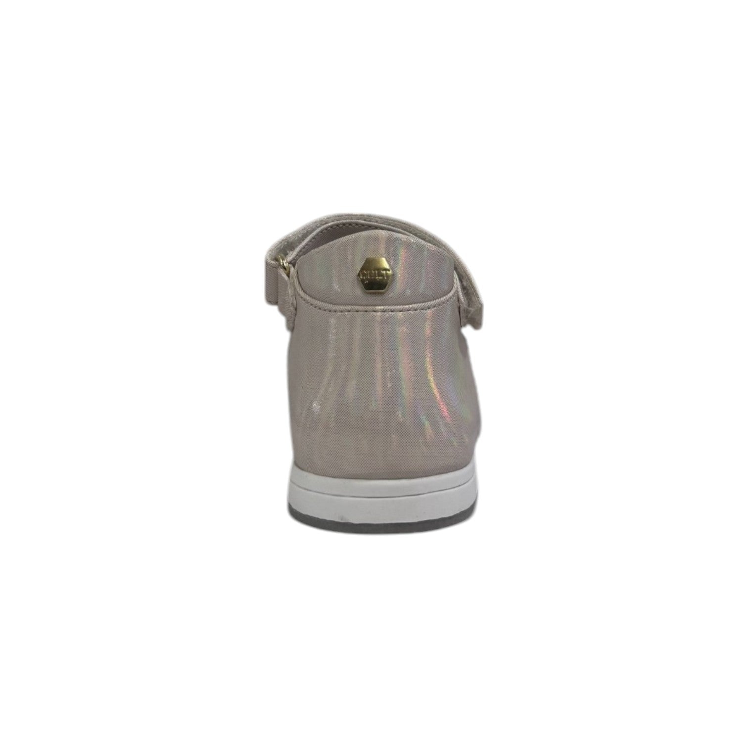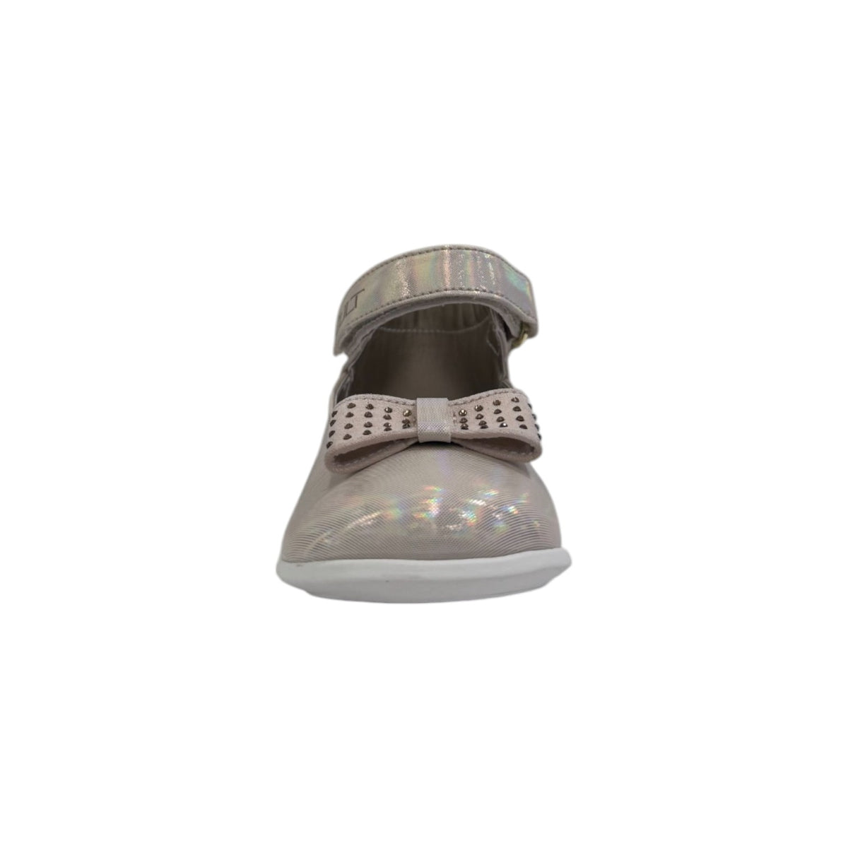 La Ballerina firmata Cult Young, qui proposta nella variante cipria realizzata in ecopelle effetto laminato è caratterizzata da fiocco frontale ricoperto di strass e da una comoda chiusura a strappo, inoltre presenta un plantare in pelle per un maggior comfort.