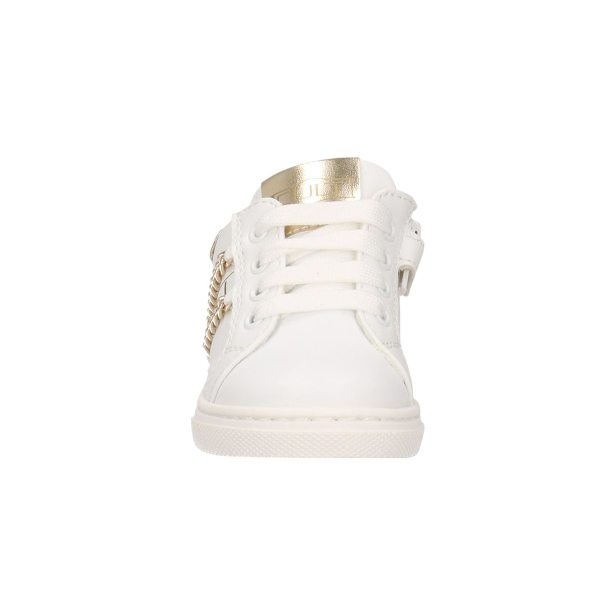 La Sneakers firmata Cult Young, realizzata in ecopelle qui proposta nella variante bianca è caratterizzata da inserti dorati e da dettaglio laterale a catena, l'interno è foderato in tessuto con plantare in pelle. Con un design moderno e dettagli silver, queste scarpe aggiungono un tocco di luminosità e carattere a qualsiasi outfit, garantendo al tempo stesso praticità e resistenza.