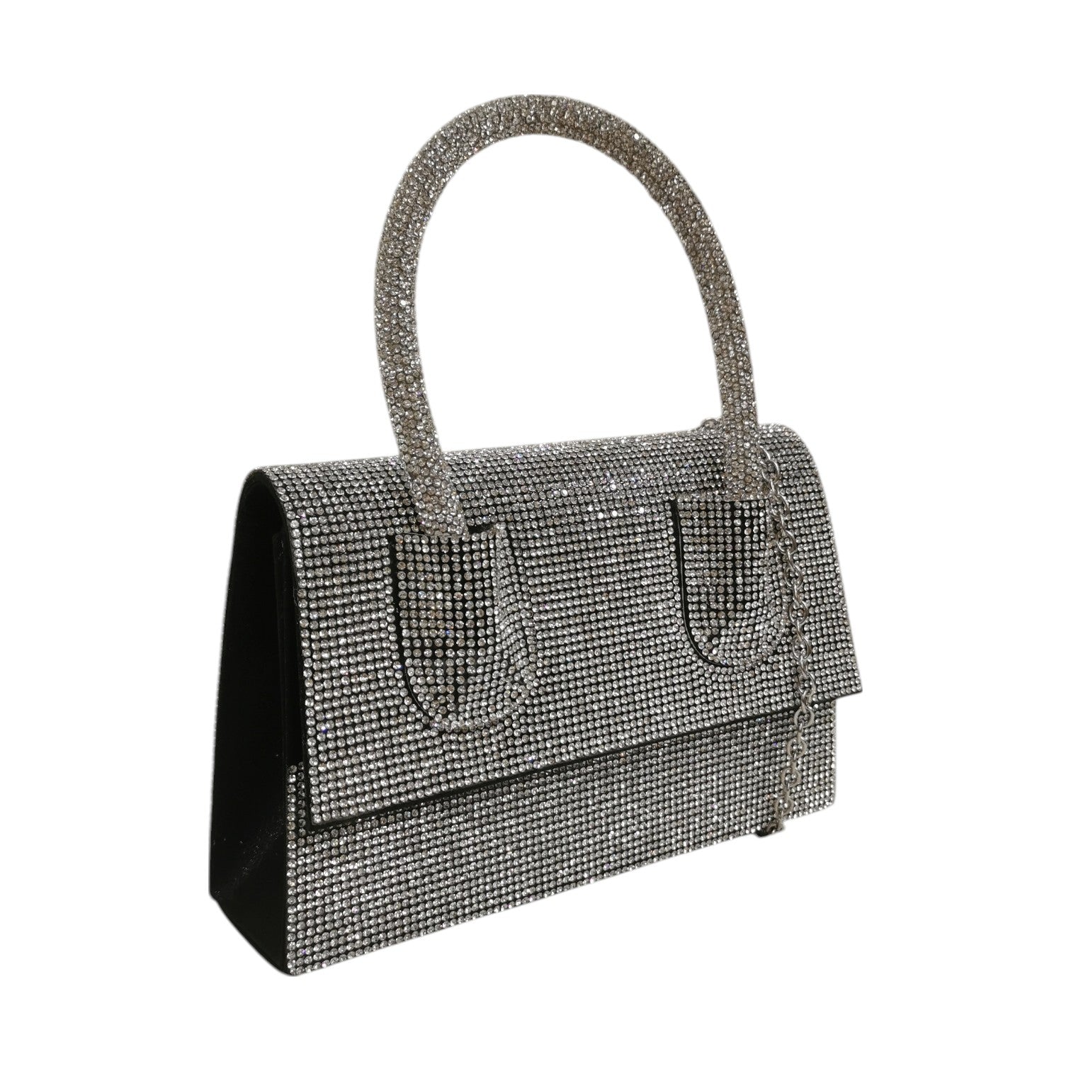 Della Fonte Borsa a Mano Nera Ricoperta da Strass da Donna