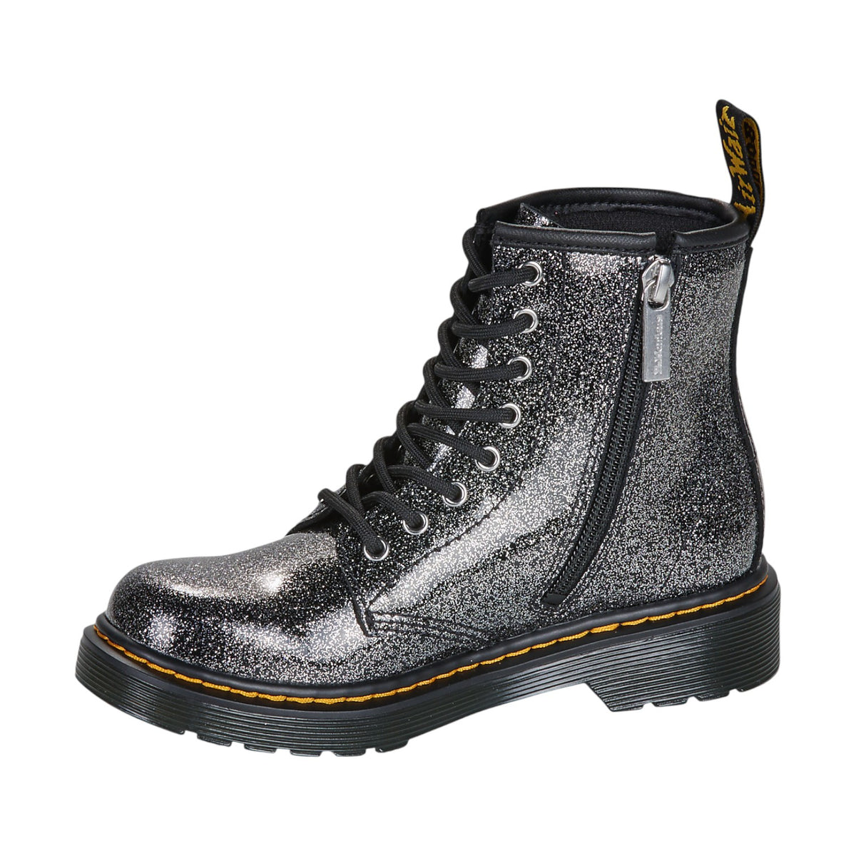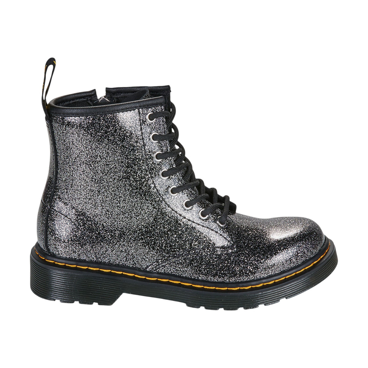 L'Anfibio firmato Dr. Martens, realizzato in pelle con glitetr all over pronto a catturare l’attenzione ad ogni passo, anche nelle taglie più piccole. Pensati per i piccoli ribelli in crescita, sono caratterizzati da una zip centrale per rendere più facile la calzata, oltre ad un inserto imbottito nascosto per un comfort extra.