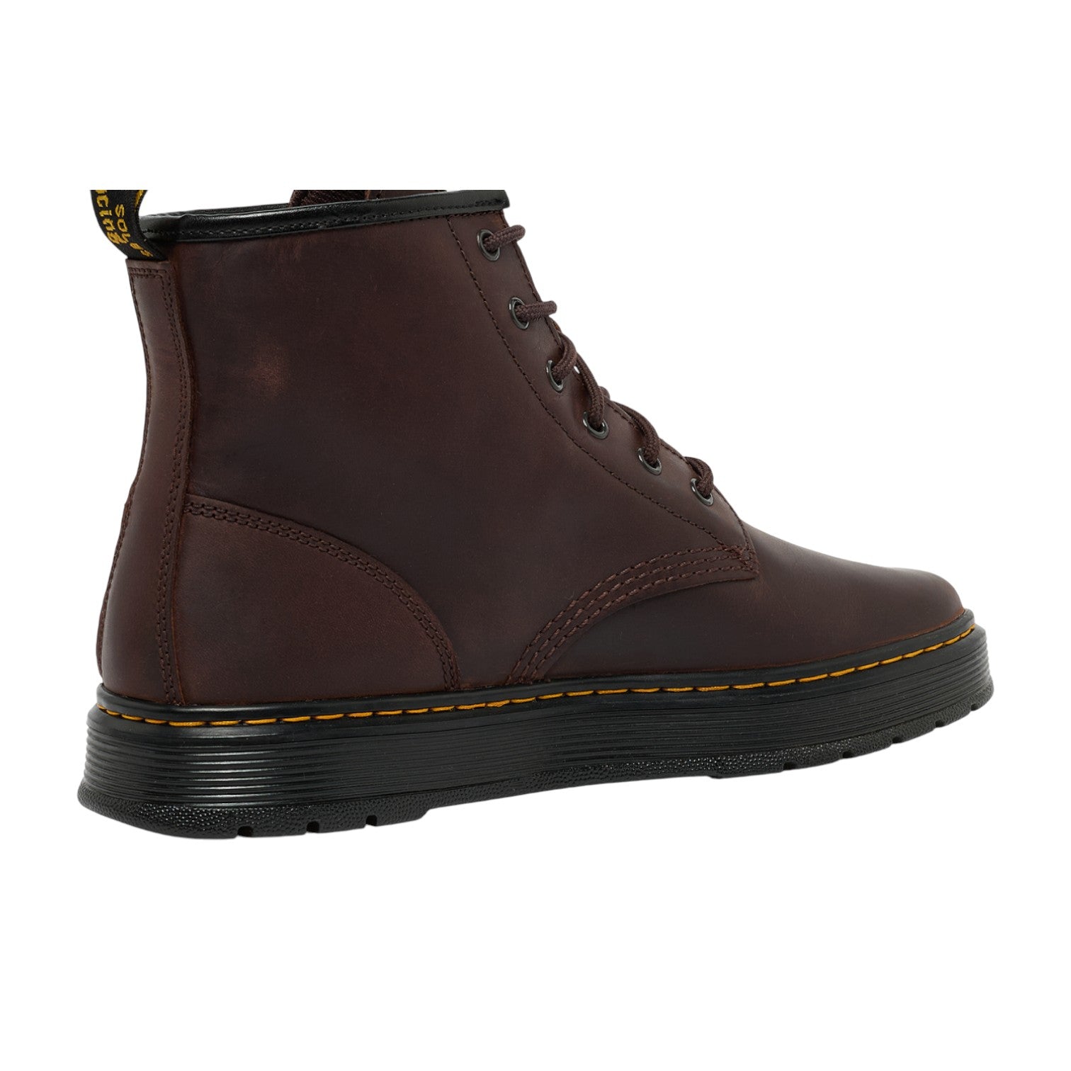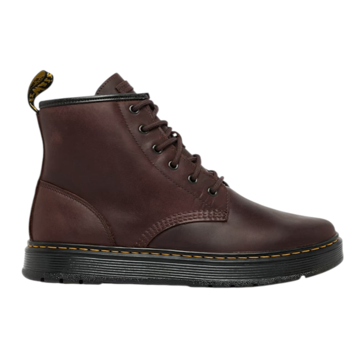 L'Anfibio firmato Dr. Martens, a 6 occhielli mostrano tutta la loro anima utilitaria, ma con un twist in stile Dr. Martens. Realizzati in pelle Crazy Horse, un materiale dall'aspetto naturalmente vissuto che sviluppa una texture distintiva con il passare del tempo. Una tomaia monocromatica con i suoi occhielli e lacci neri; il tutto rifinito dai nostri segni distintivi: linguetta AirWair sul tallone, suola a cuscinetto d'aria Brookline e caratteristiche cuciture gialle.