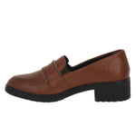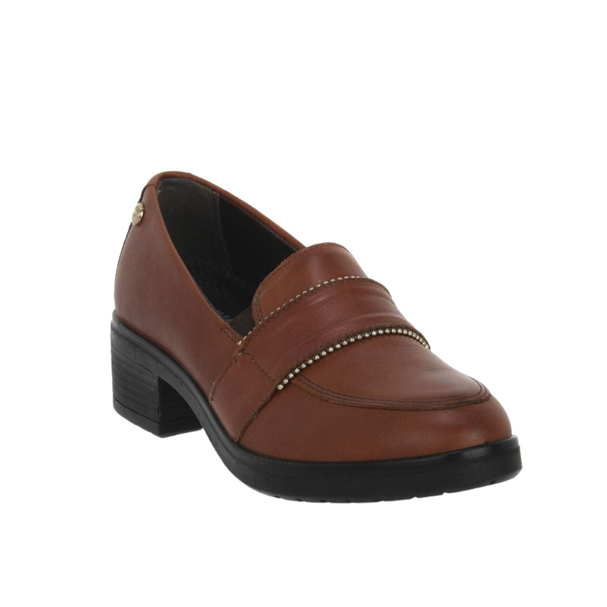 Il Mocassino firmato Enval, dal design sportivo e raffinato realizzato in pelle con accessorio metal dorato, presenta una fodera e sottopiede estraibile in pelle. Calzata comoda su tacco a blocco di 4cm e suola in gomma antiscivolo.