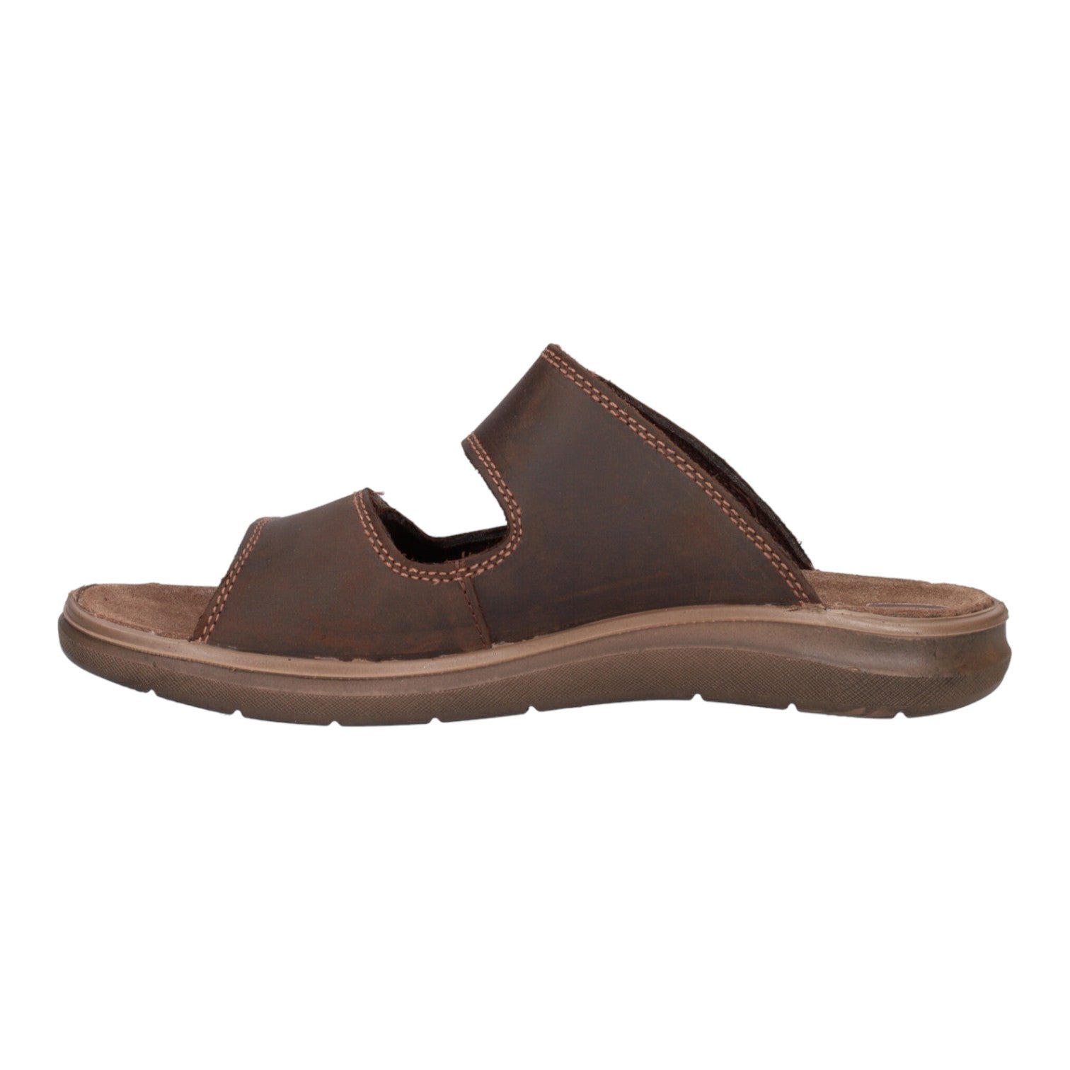 La Ciabatta firmata Enval Soft, realizzata in pelle ingrassata testa di moro, è caratterizzata da due fasce regolabili con strappo e da una fodera interna rivestita in tessuto, con sottopiede in pelle e fondo in gomma.