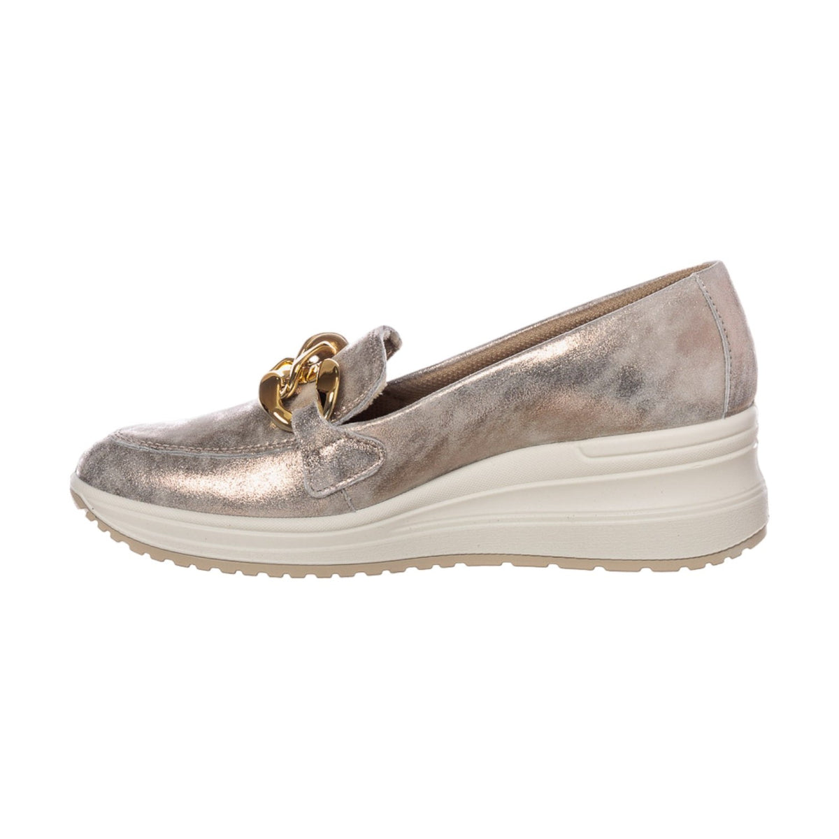 Enval Soft Mocassino Donna Tortora Laminato con Catena Oro