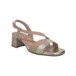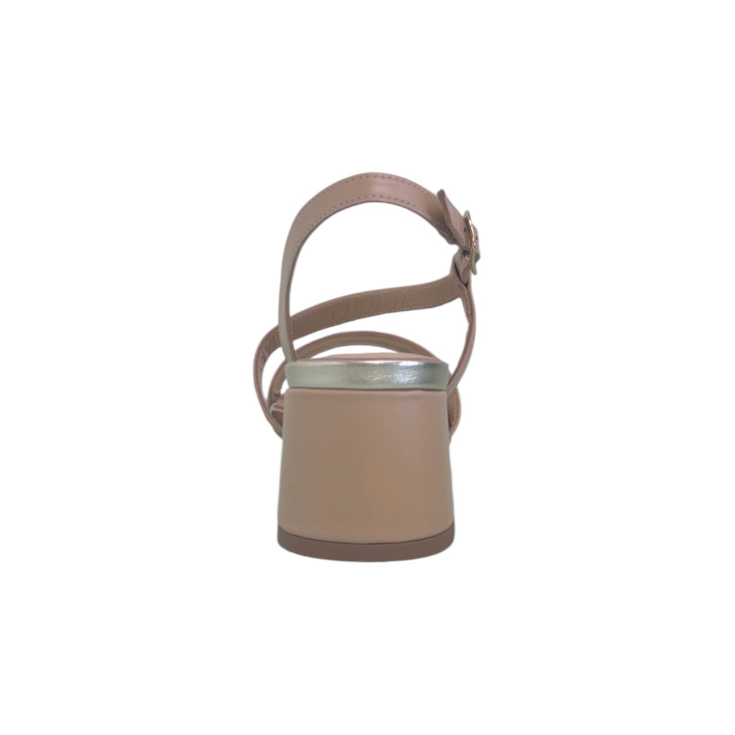 Il Sandalo firmato Enval Soft, realizzato in morbida pelle beige è caratterizzato da fascette laminate dorate e da fibbia alla caviglia per non ostacolare i tuoi movimenti e la suola ha un tacco di media altezza che dona slancio senza stancare.