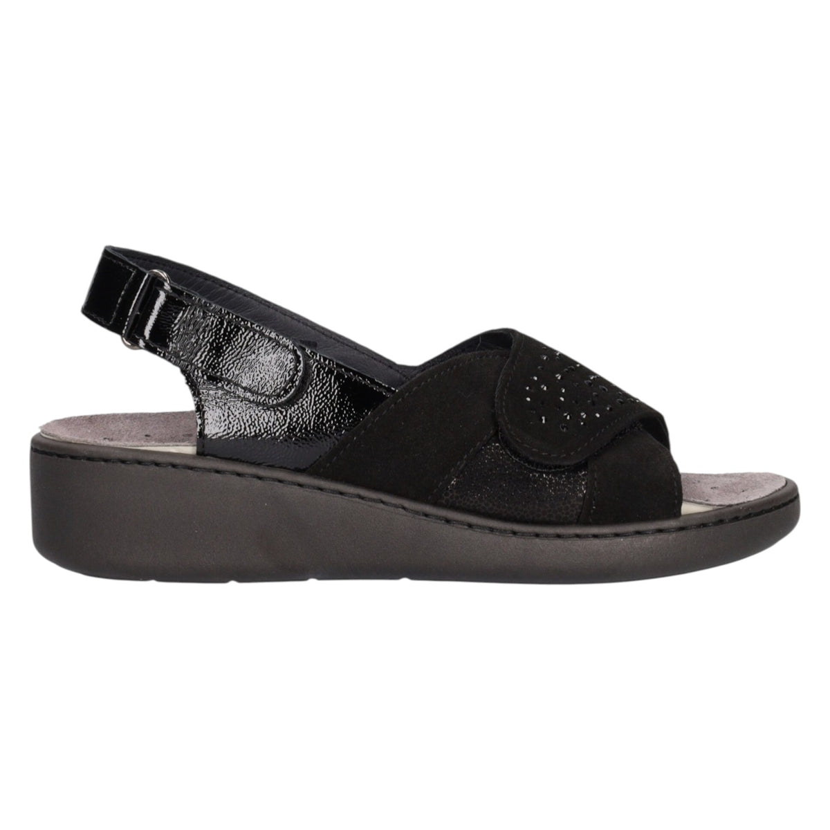 Enval Soft Sandalo Nero in Camoscio e Strass da Donna