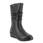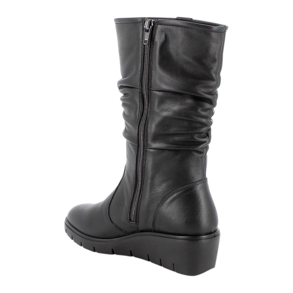 Enval Soft Stivale Donna in Pelle Nera Arricciata con Zeppa Alta 50mm