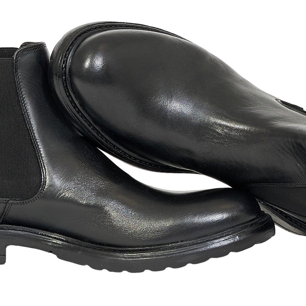 Exton Beatles Uomo in Pelle Nera con Elastici Laterali