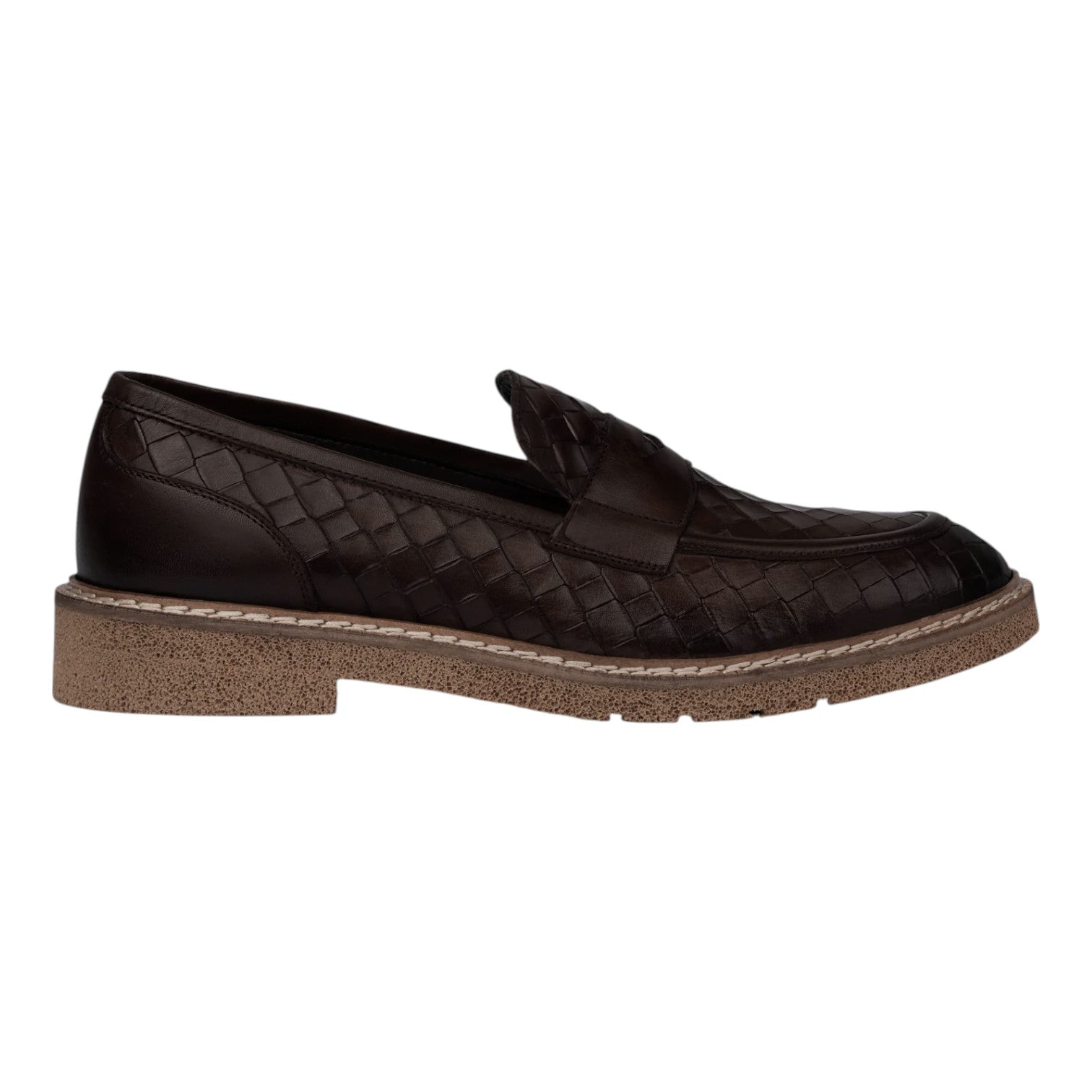 Exton Mocassino Uomo in Pelle Testa di Moro con Motivo Intrecciato e Bordo Cucito