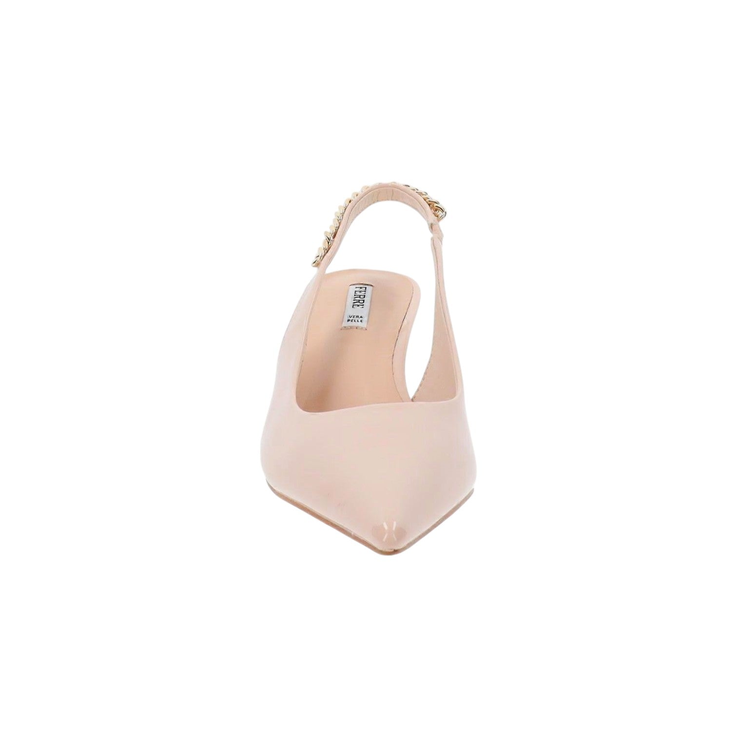 Ferrè Chanelle Donna in Vernice Nudo con Catenelle con Tacco Basso di 6cm