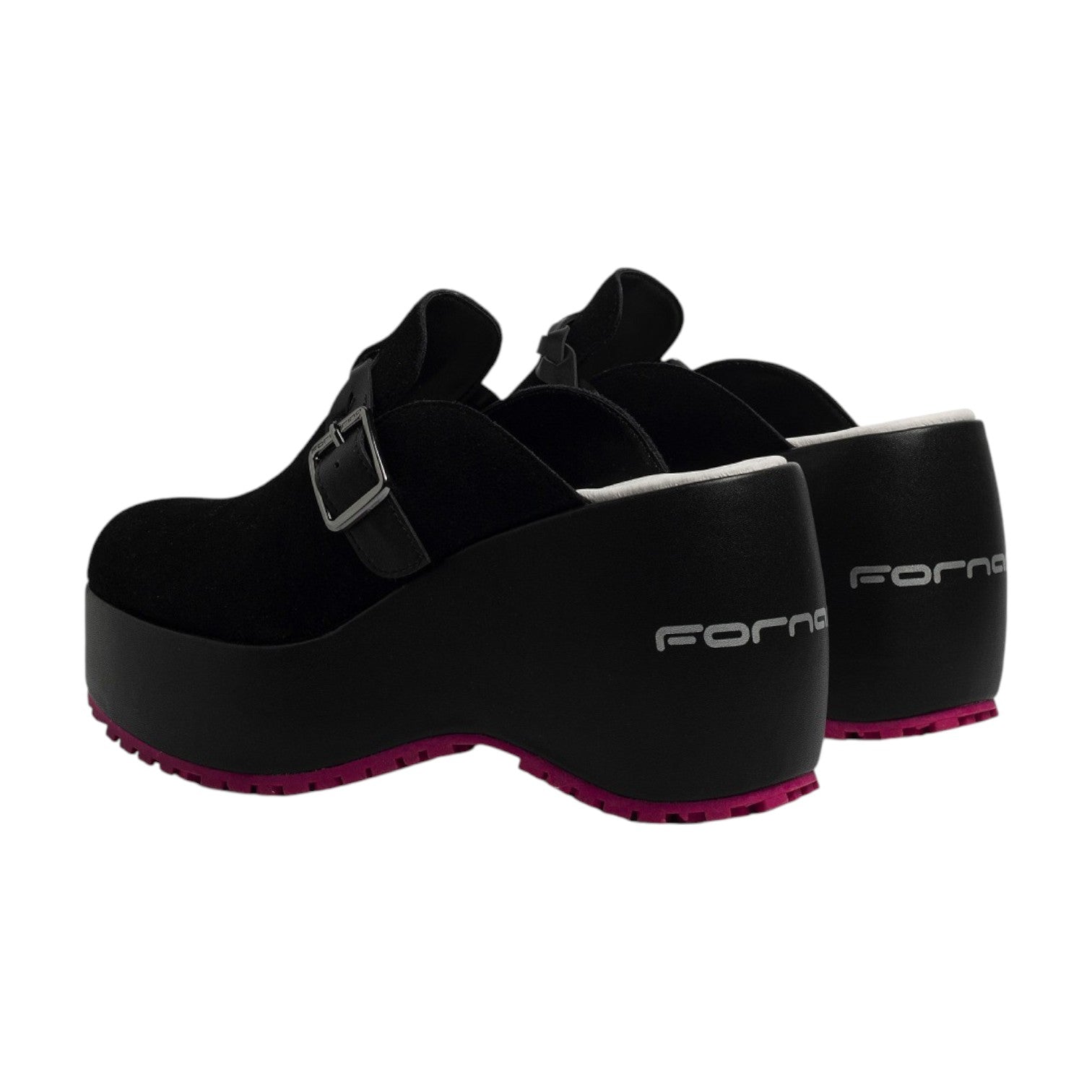 Fornarina Bost Sabot Nero in Camoscio con Platform da Donna