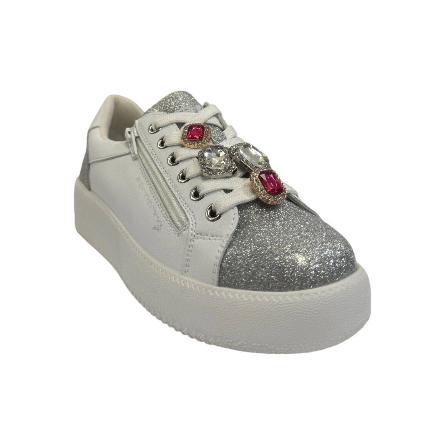 Fornarina Kitty Sneakers Bianca Argento con Lacci e Zip Laterale da Bambina