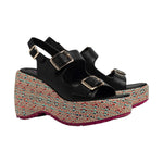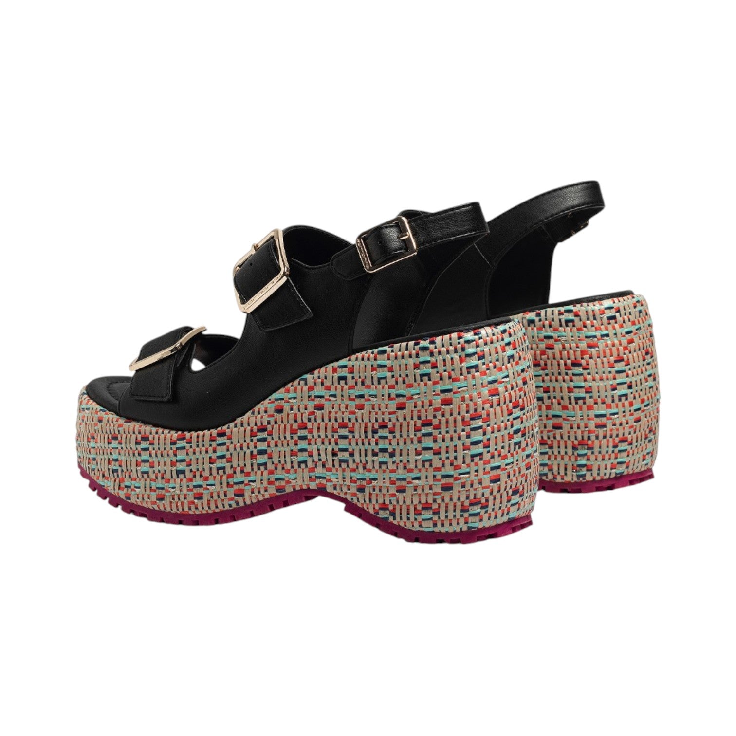 Fornarina Mila Sandalo Nero con Zeppa in Raffia Colorata da Donna