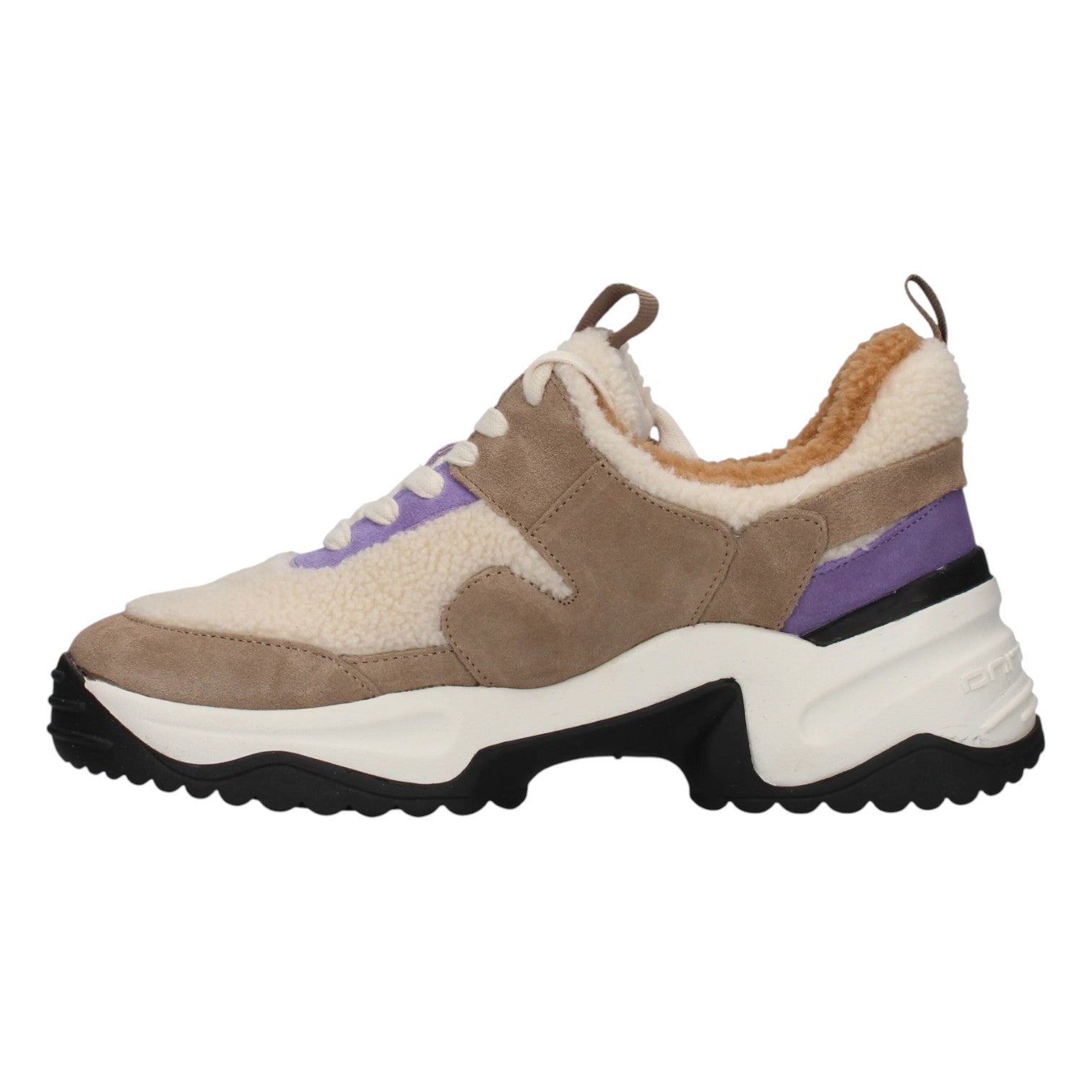 La Sneakers firmata Fornarina, realizzata nella variante taupe in camoscio è caratterizzata da inserti con pelliccetta, l'interno è foderato in tessuto e pelliccetta ecologica con sottopiede in pelle.