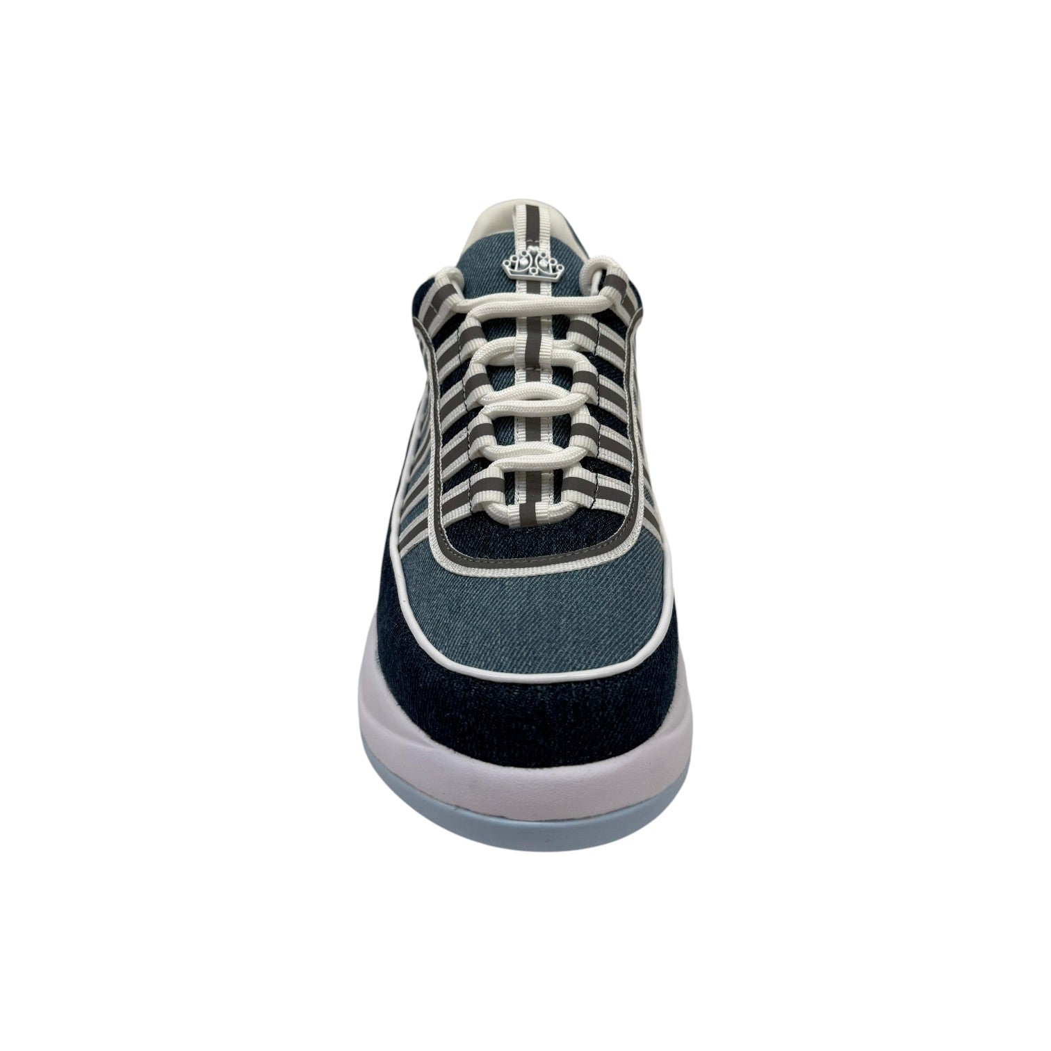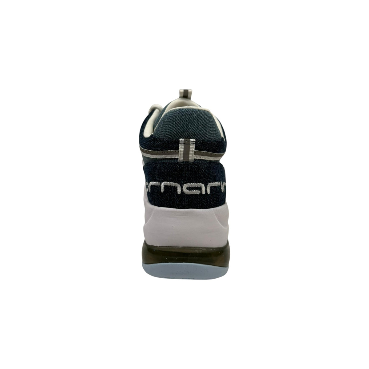 La Sneakers firmata Fornarina, realizzata in casmodcio con inserti in tessuto qui proposta in una versione denim blu. Indimenticabile platform con inserto trasparente, mix and match di materiali, presenta il logo Fornarina posteriore ton sur ton e corona metallica sulla linguetta.