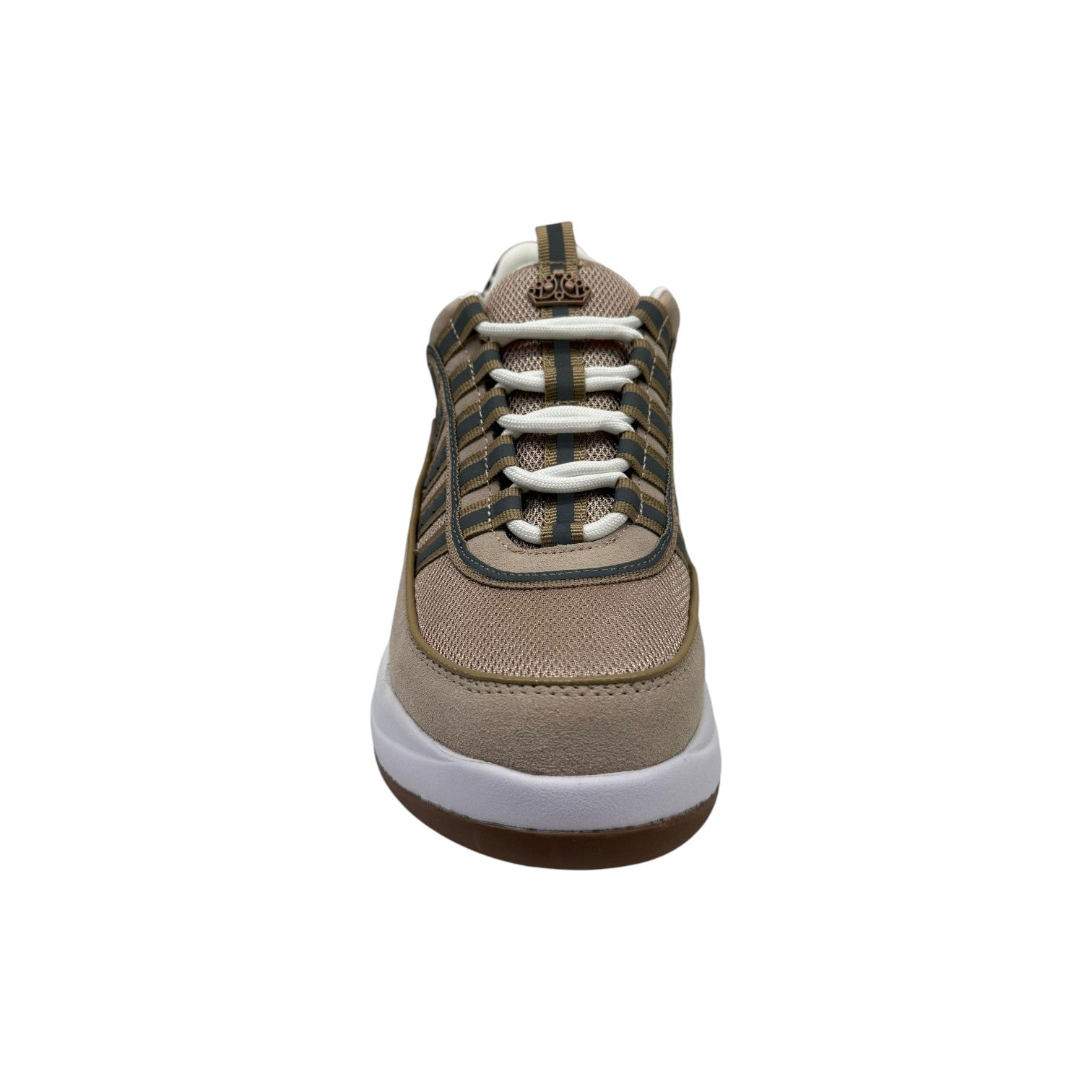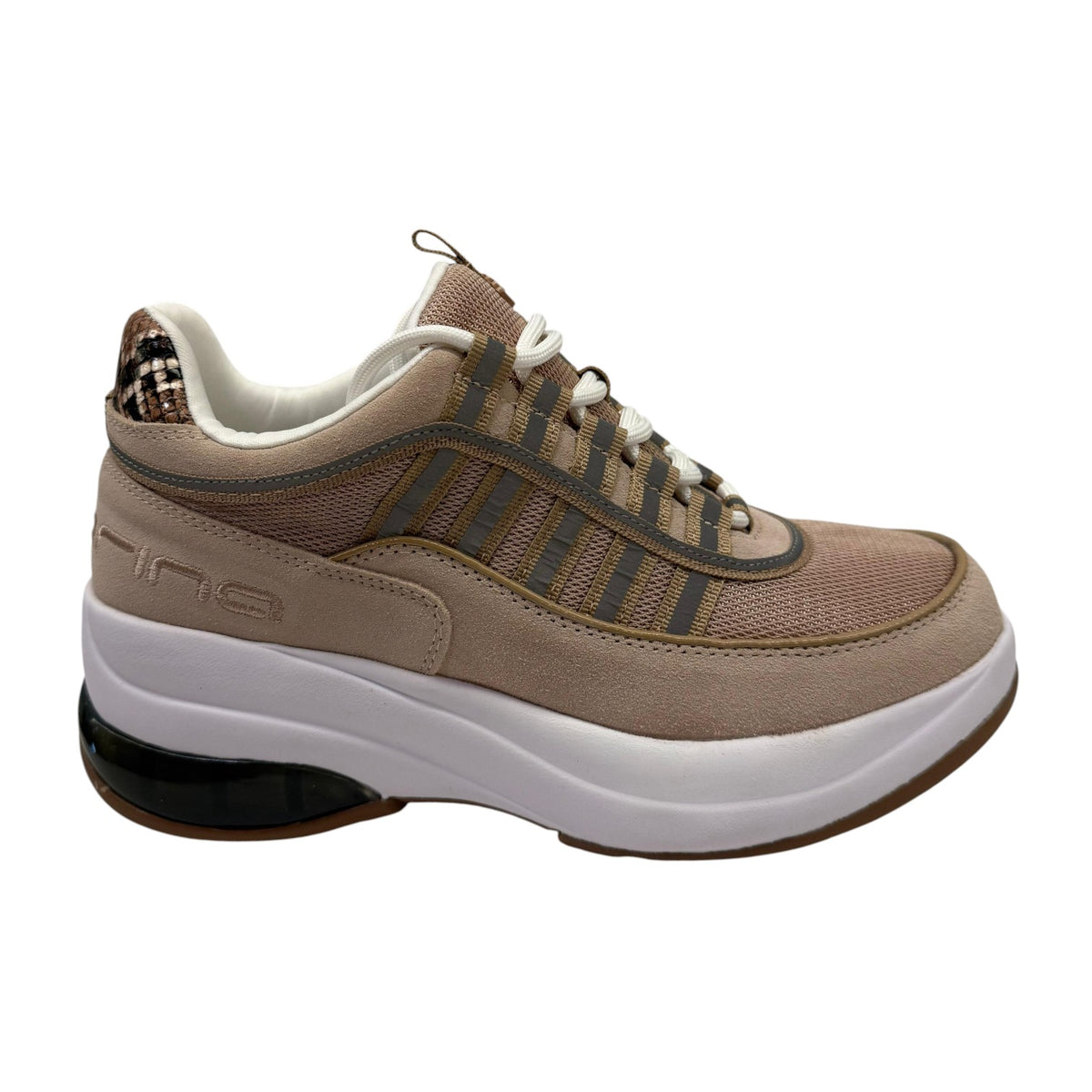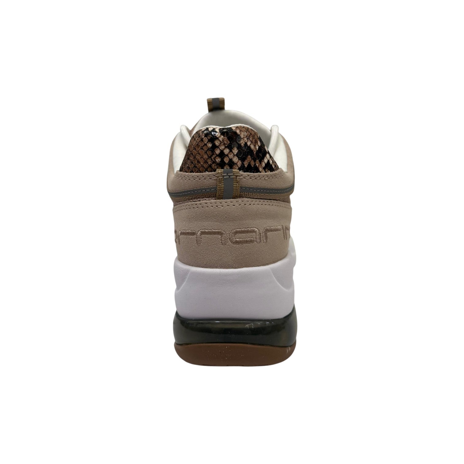 La Sneakers firmata Fornarina, realizzata in casmodcio con inserti in tessuto qui proposta in una versione nocciola. Indimenticabile platform con inserto trasparente, mix and match di materiali, presenta il logo Fornarina posteriore ton sur ton e corona metallica sulla linguetta.