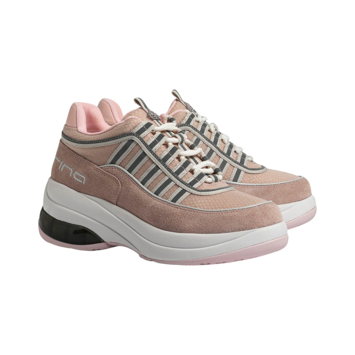 La Sneakers firmata Fornarina, realizzata in camoscio, tessuto tecnico rosa e dettagli grigi e bianchi è caratterizzato da plantare estraibile in pelle e da platform che ha rivoluzionato il panorama dello streetwear è tornata in una versione total pastel pink per la primavera.