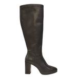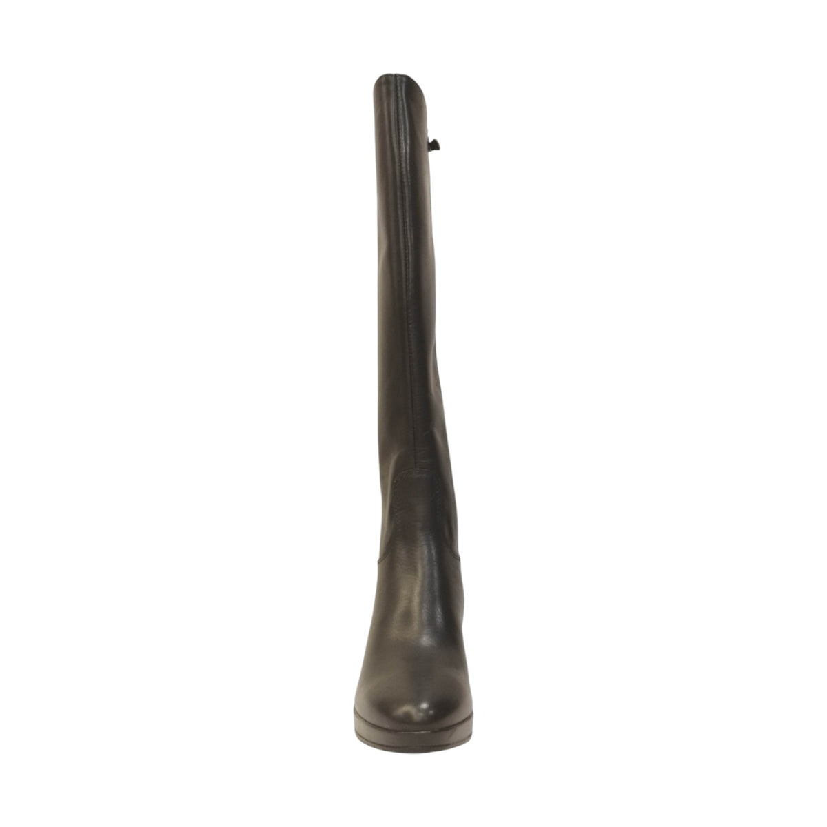 Lo Stivale firmato Francesco Brunelli, realizzato in pelle è caratterizzato da interno foderato in tessuto con sottopiede imbottito in pelle, e da un tacco largo alto 9cm accompagnato da un plateau alto 2cm.