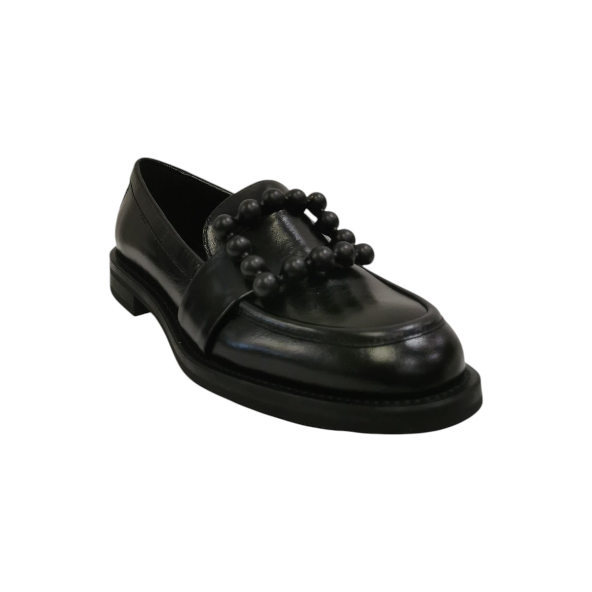 Frau Mocassino Donna in Pelle Nera con Accessorio