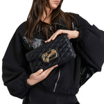 Gaelle Borsa a Spalla da Donna Nera Matelassè con Tracolla Catena