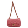 La Tracollina firmata Gaelle, realizzata in ecopelle è caratterizzata da fantasia matelasse a rombi, modello shoulder mini, con chiusura a girello a scomparsa su monogramma in metallo dorato sulla patta e tracolla scorrevole in catena intrecciata per un utilizzo versatile a spalla.