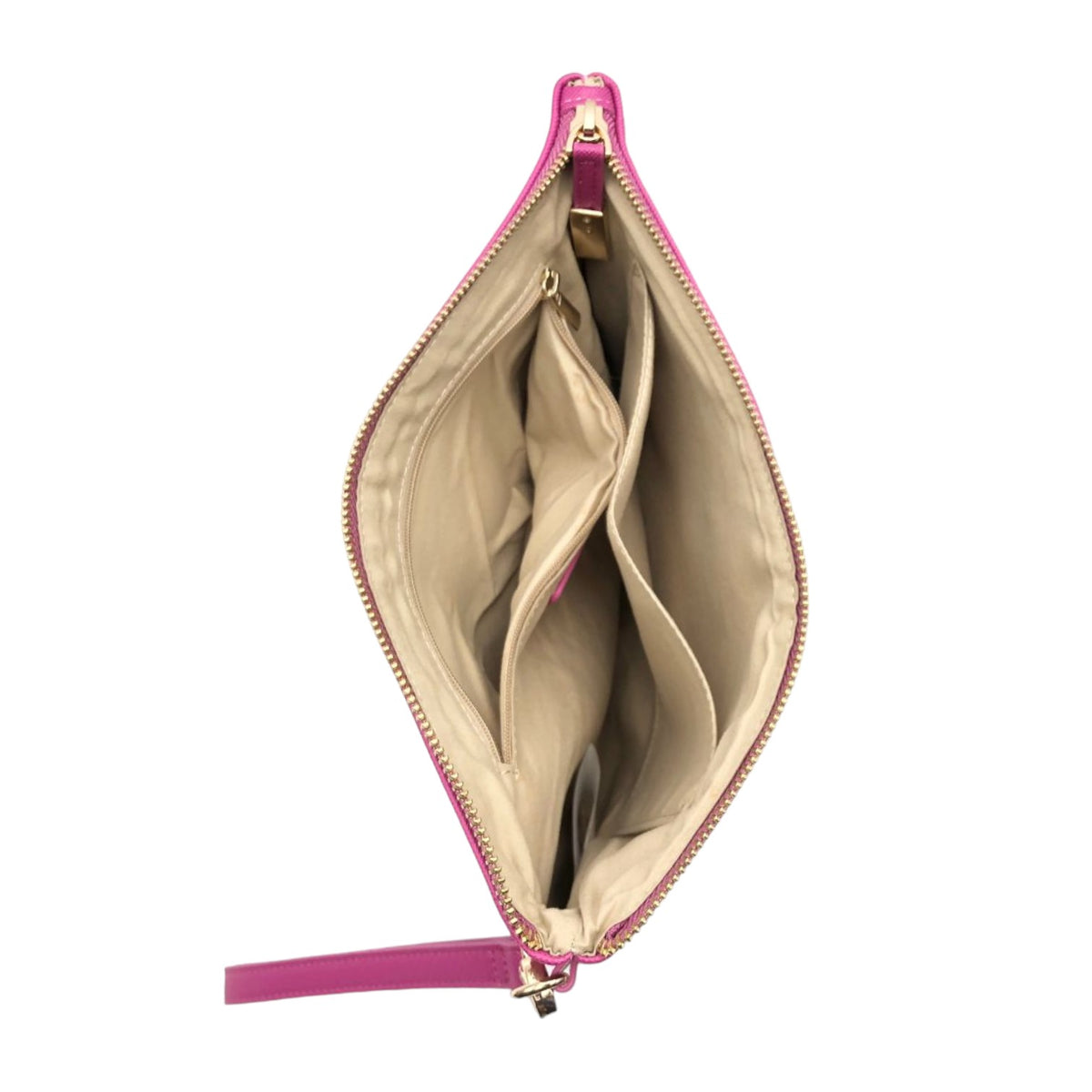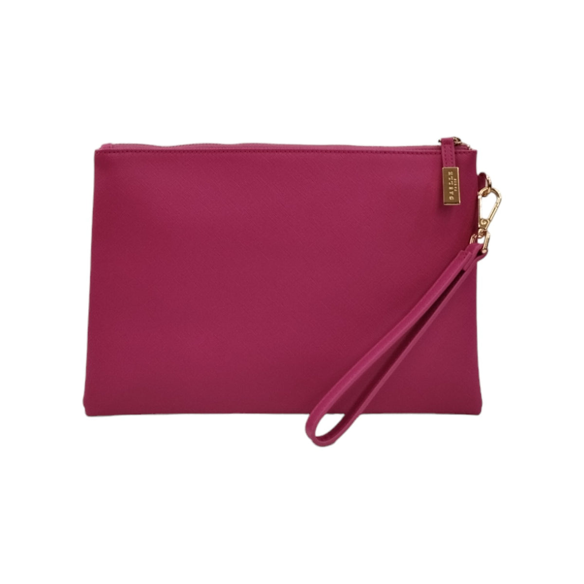 La Pochette firmata Gaelle, realizzata in ecopelle è caratterizzata da polsino removibile e da interno foderato in tessuto di cui possiede due tasche una aperta e una con zip, mentre il logo Gaelle Paris in metallo dorato aggiunge un tocco di raffinatezza al design complessivo della pochette.