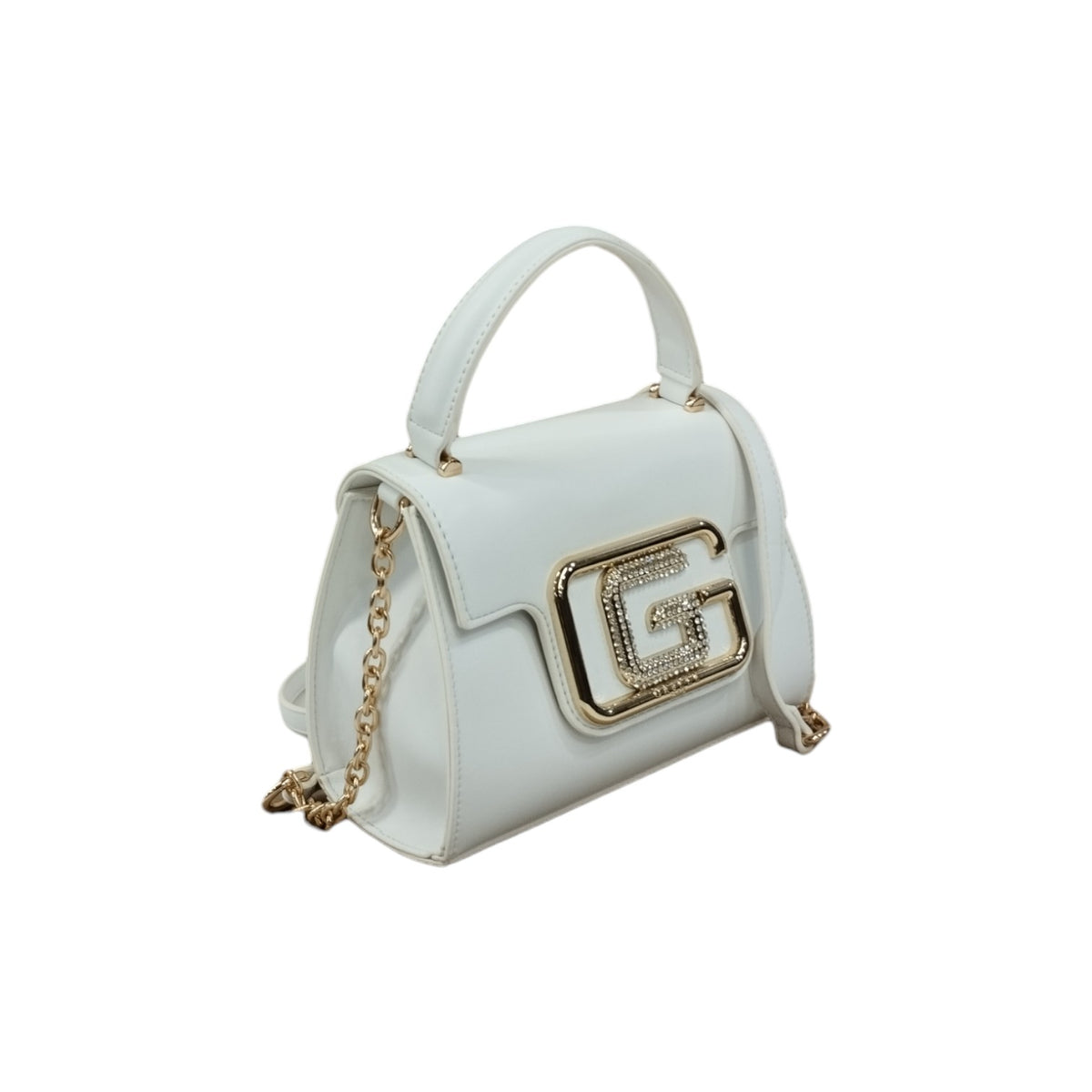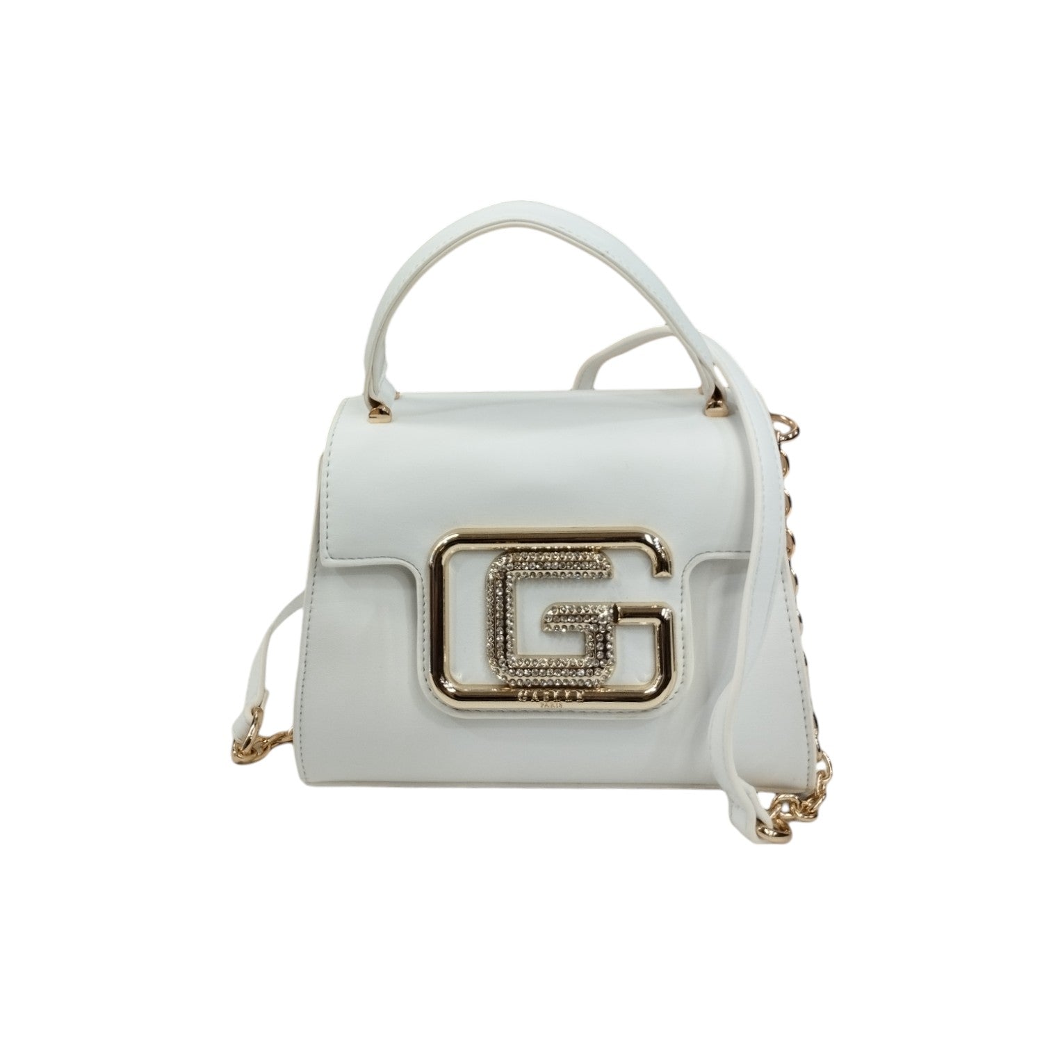 Gaelle Mini Borsa a Mano Donna in Ecopelle Bianca con Tracolla in Catena Dorata