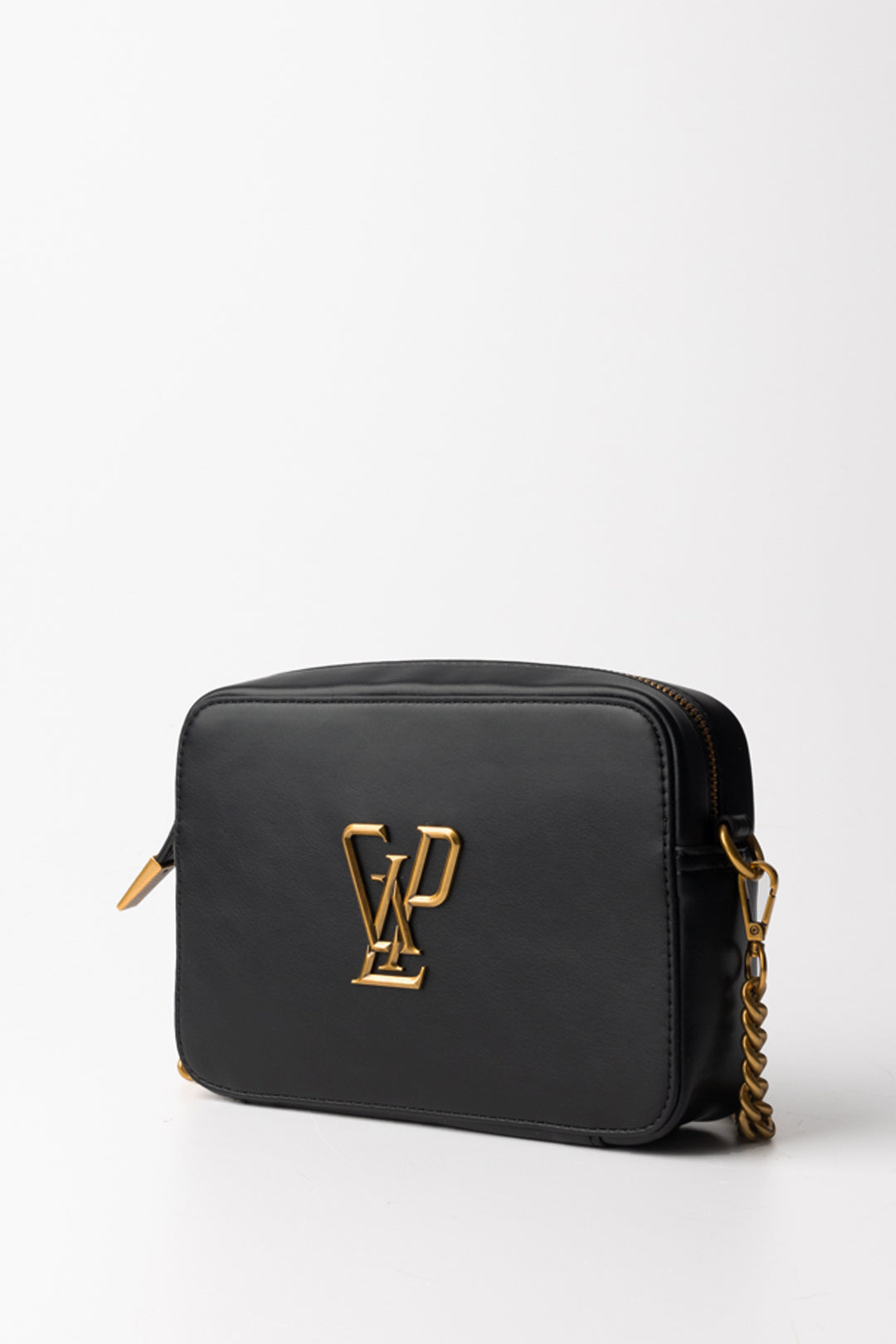 Gaelle Borsa a Tracolla Bambina in Ecopelle Nera con Logo Dorato e Catena
