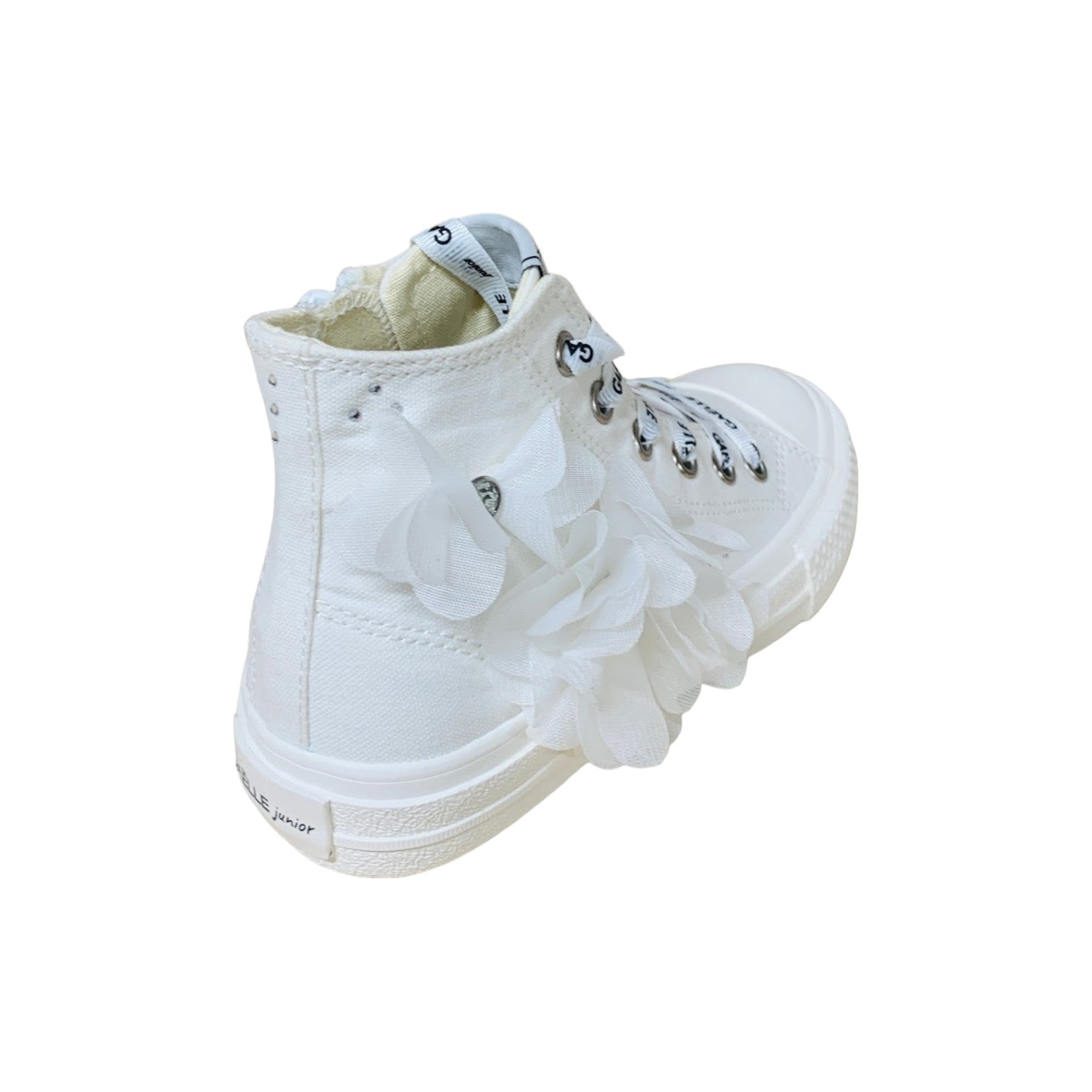 Gaelle Sneakers Alta Bambina in Tessuto Bianca con Applicazioni Fiori in Tulle con Lacci Logati