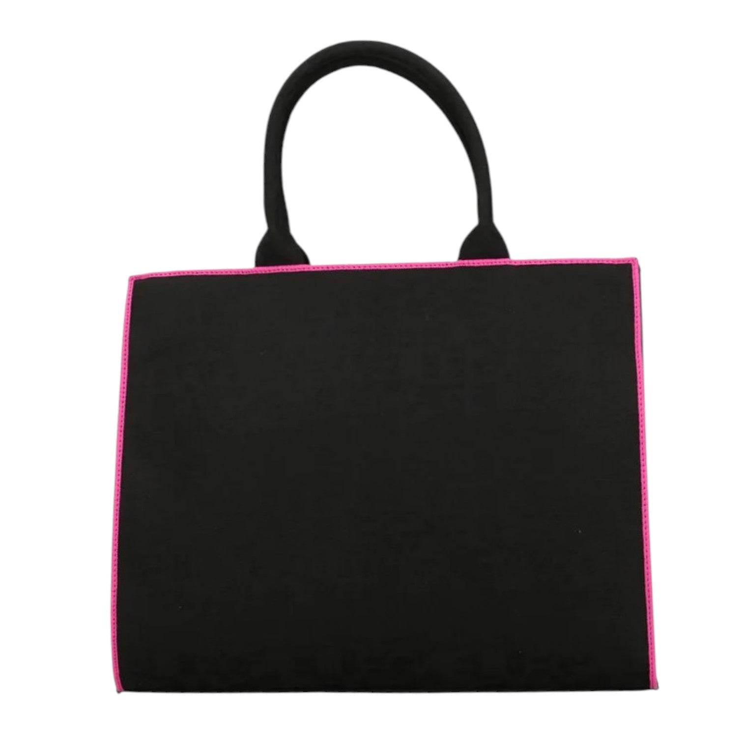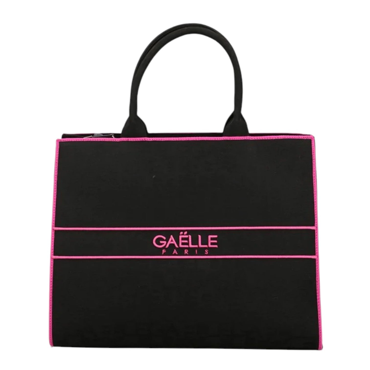 Gaelle Maxi Borsa a Mano Donna in Canvas Nera con Inserti Fucsia