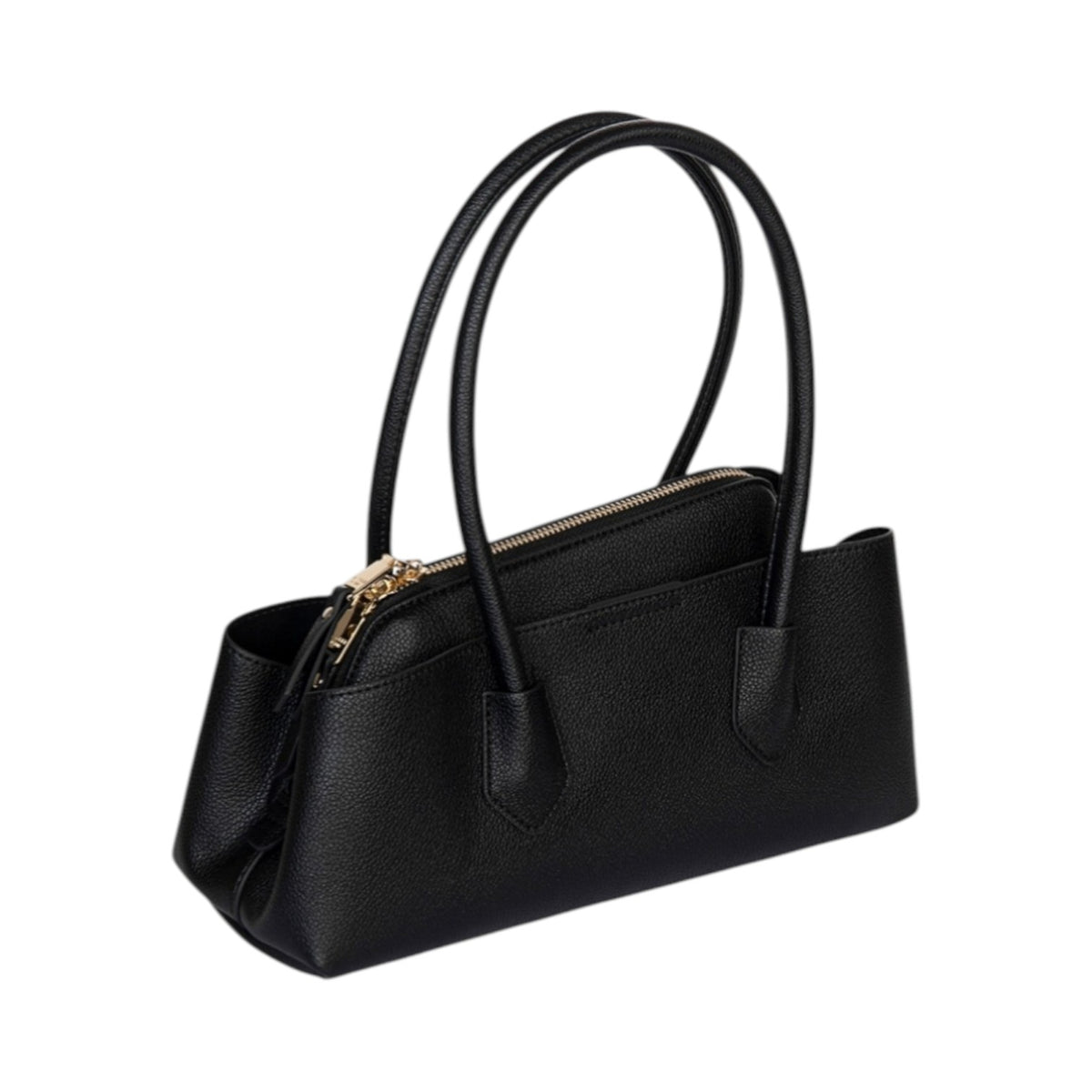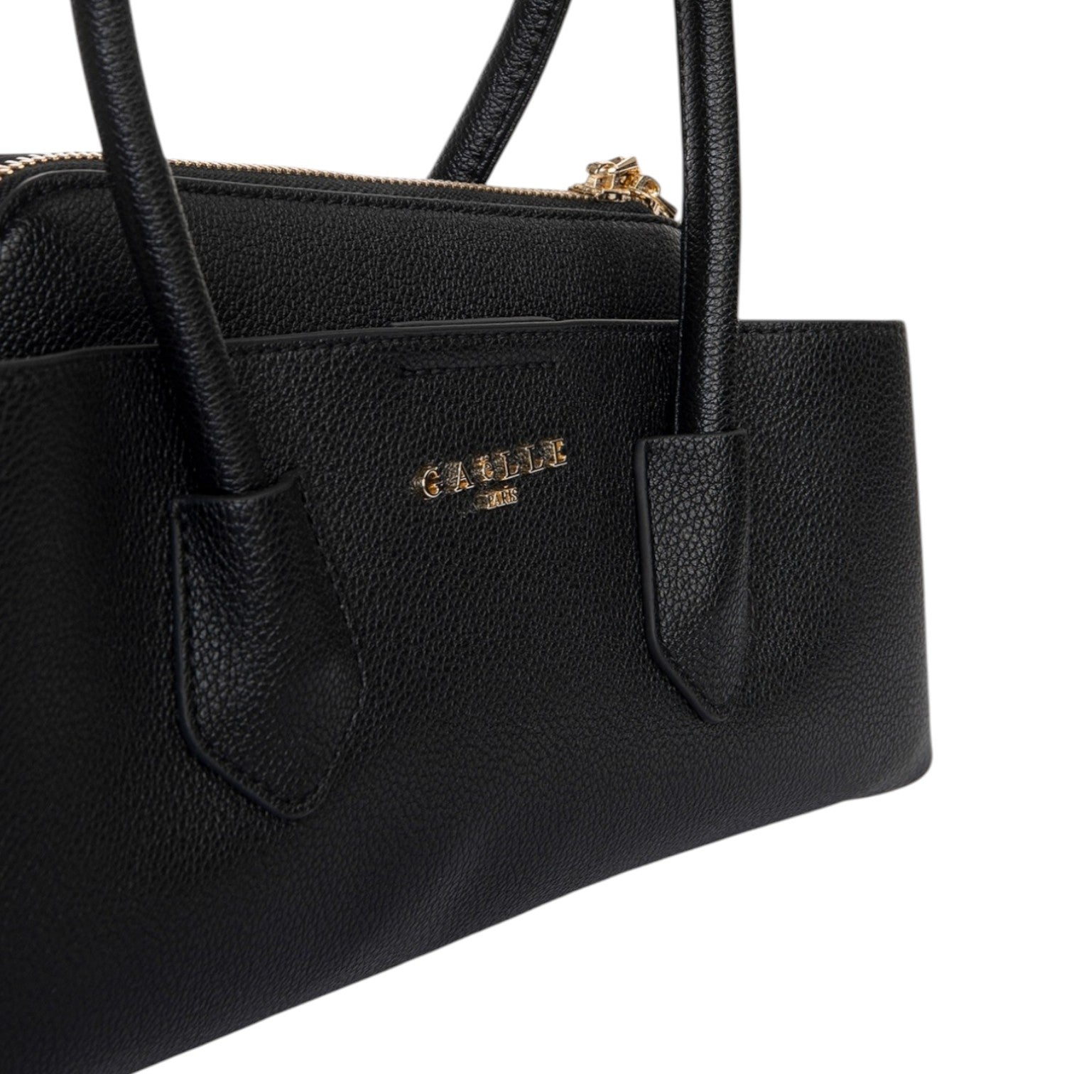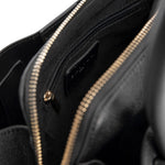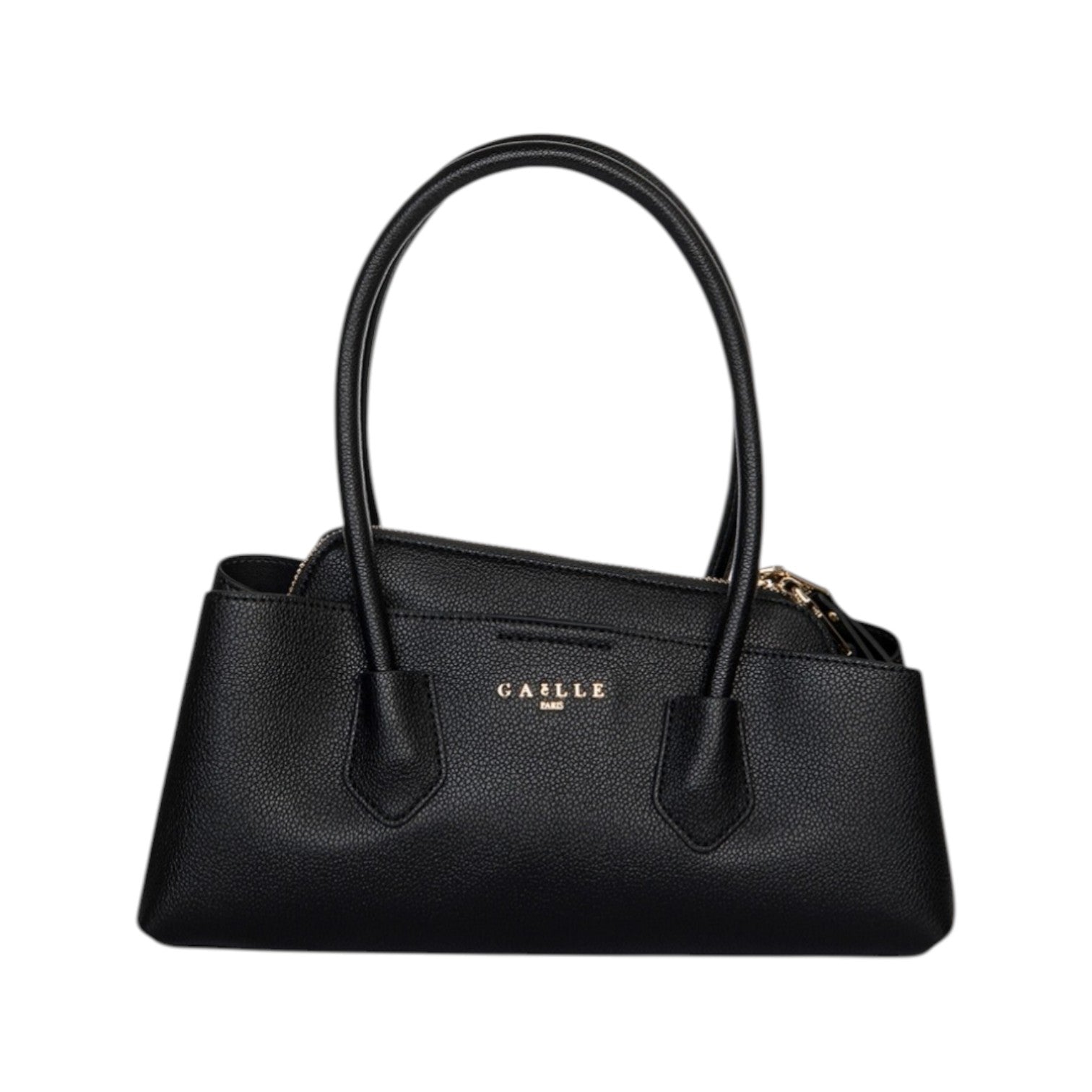 La Borsa a mano firmata Gaelle, realizzata in ecopelle nera è caratterizzata da ampi manici per portarla a mano o a spalla e da 3 scomparti interni di cui due chiusi con bottone a pressione e quello centrale chiuso con zip.