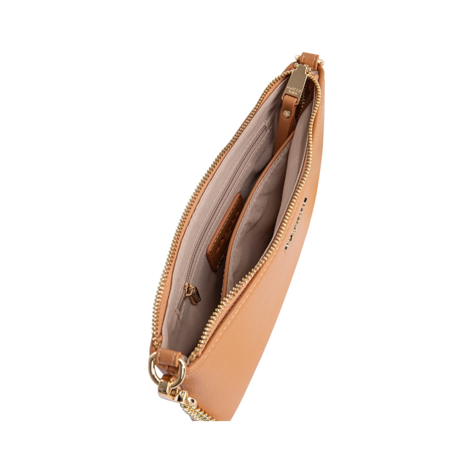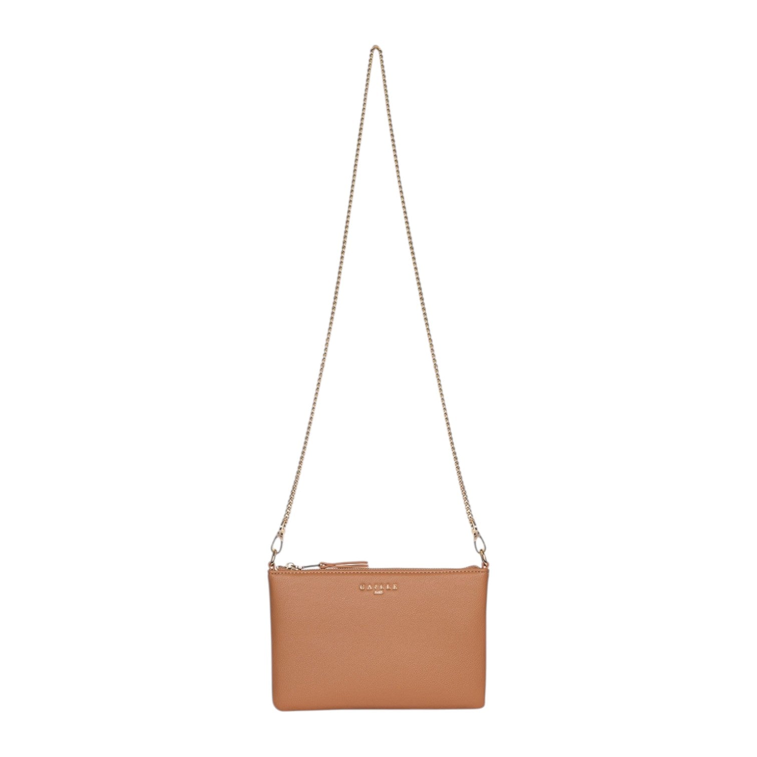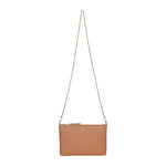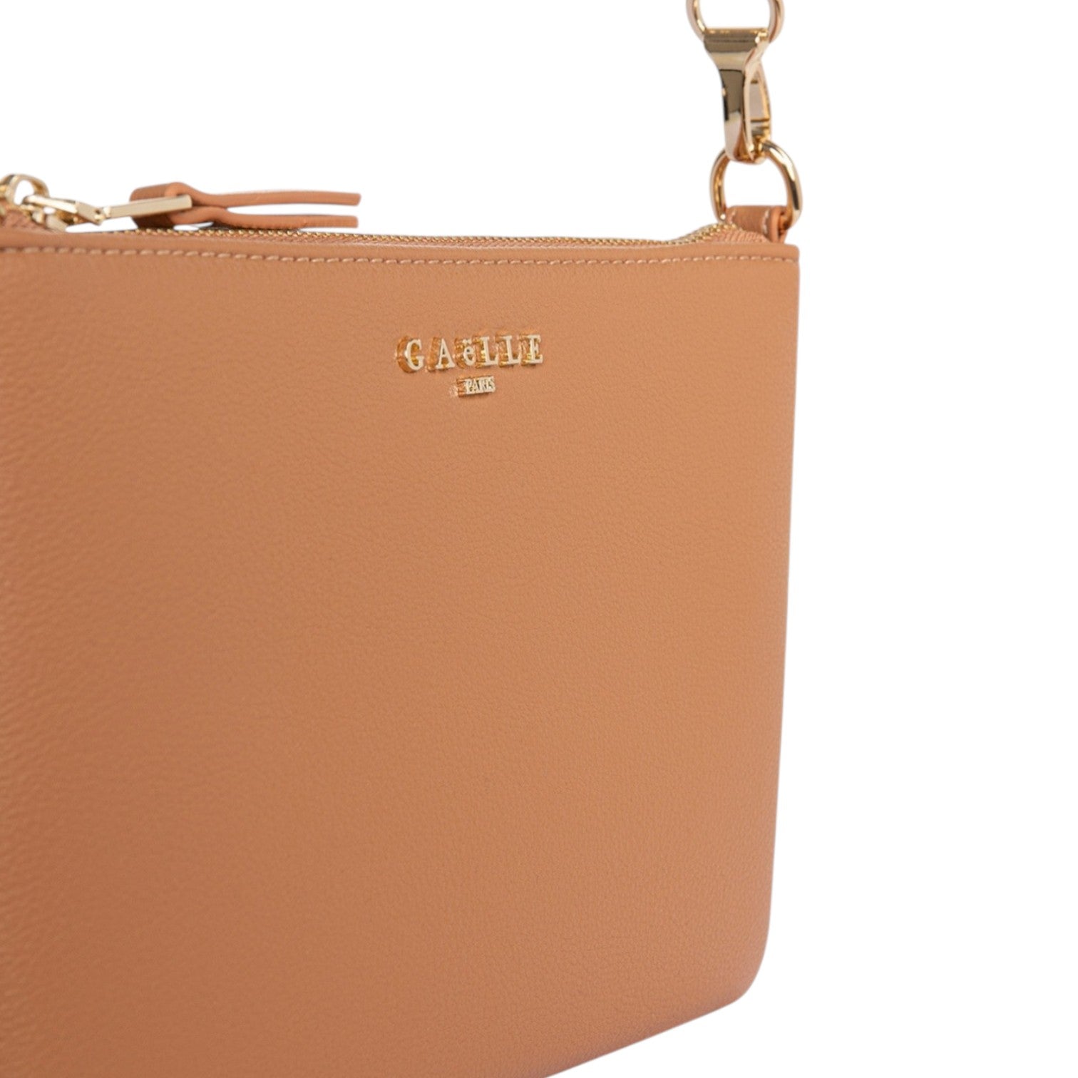 La Pochette firmata Gaelle, realizzata in ecopelle cammello è caratterizzata da con lettering logo in metallo e da pratica tracolla a catena removibile e offre uno stile versatile e moderno, ideale per la donna metropolitana che ama distinguersi con eleganza e funzionalità. Presenta internamente due tasche una aperta ed una chiusa con zip.