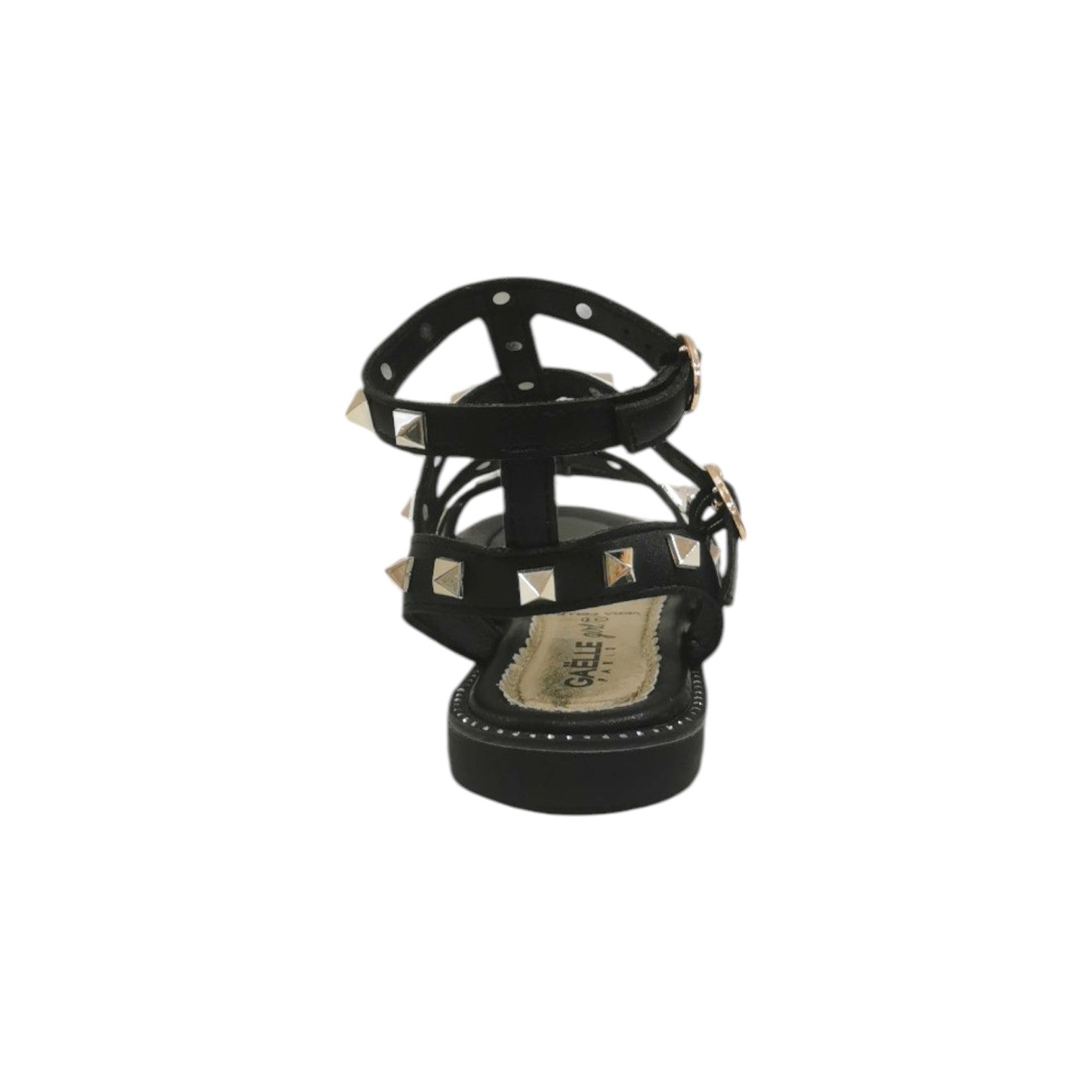 Gaelle Sandalo Bambina in Ecopelle Nero con Borchie Dorate