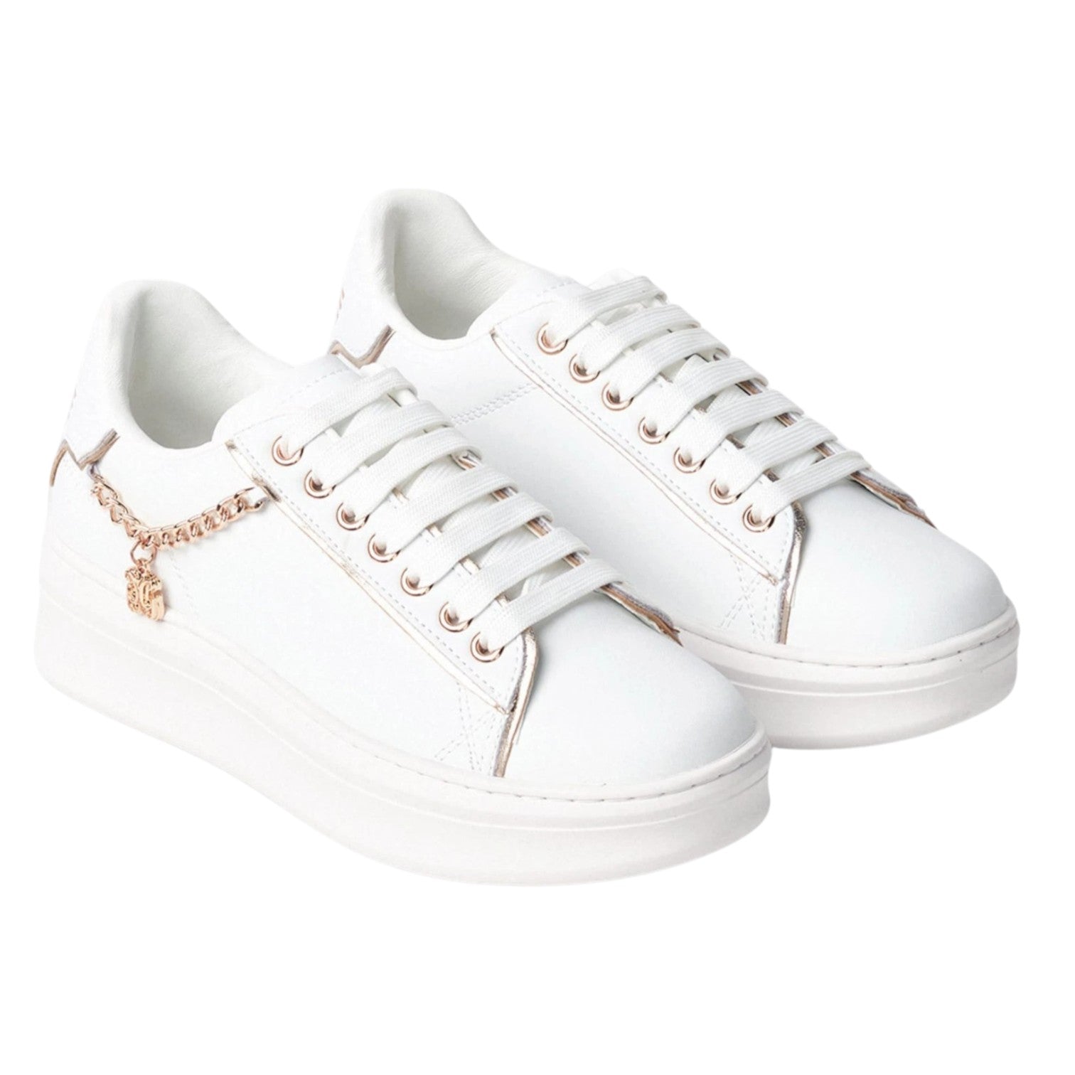 Gaelle Sneakers Donna in Ecopelle Bianca con Charm Dorato